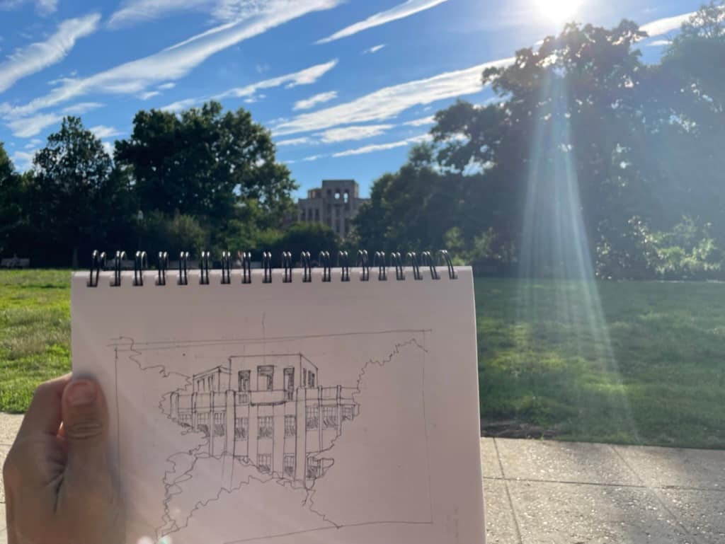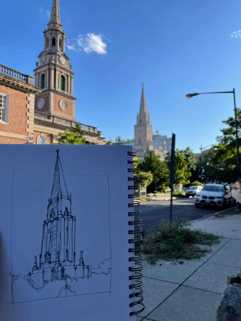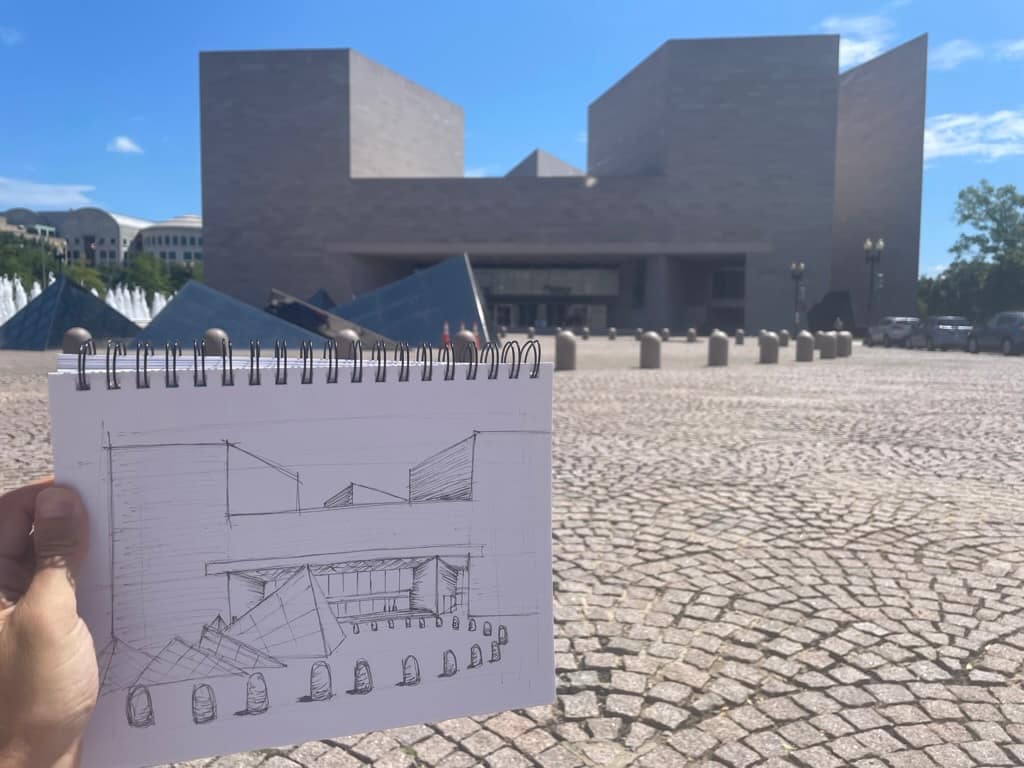 At the beginning of the summer, I set a goal to sketch every day that I was in DC. It wasn’t for graduate school, or for any particular class, nor was it a requirement for my internship, but rather something I wanted to do. We’ve been told that as an architect when you travel, you should sketch. Not only does it help you intimately know a building or a place, but it also helps to maintain the connection between the eye and the hand. Sketching is the way in which architectural ideas are realized. Every great building started with a sketch.