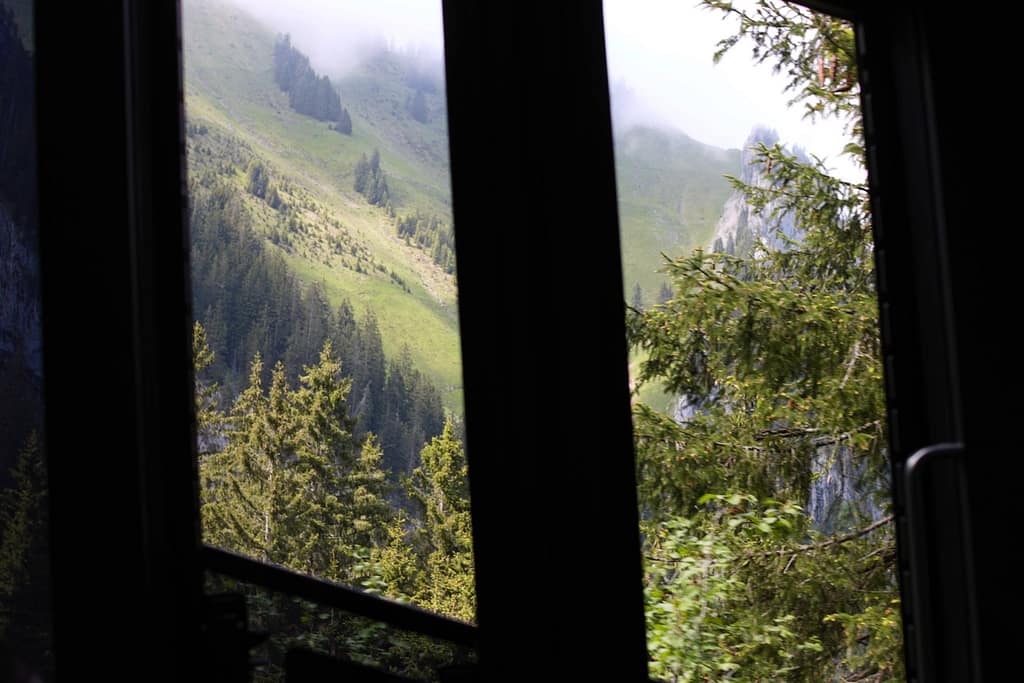 The second station was some sort of adventure park. We had to get out of our small cable car and wait for a bigger one. Panoramic views from inside the station looked out to kids in harnesses tight rope walking, zip lining and climbing. There was even a mountain toboggan run, that is the longest summer toboggan run in Switzerland. It would have been fun to do, but we didn’t have any time. We had to wait for the next cable car.