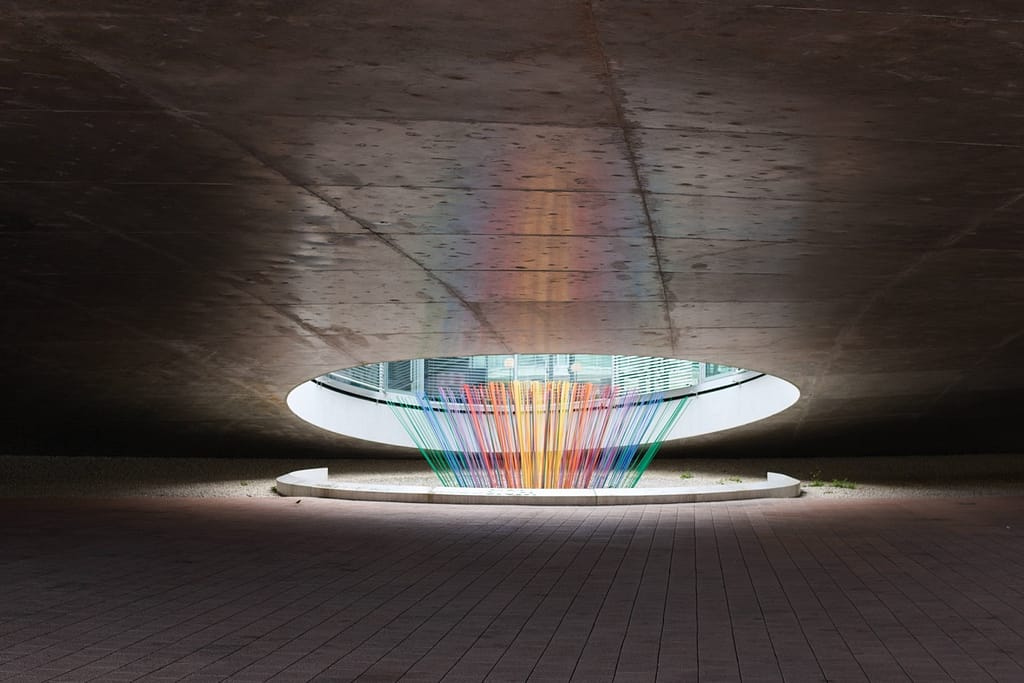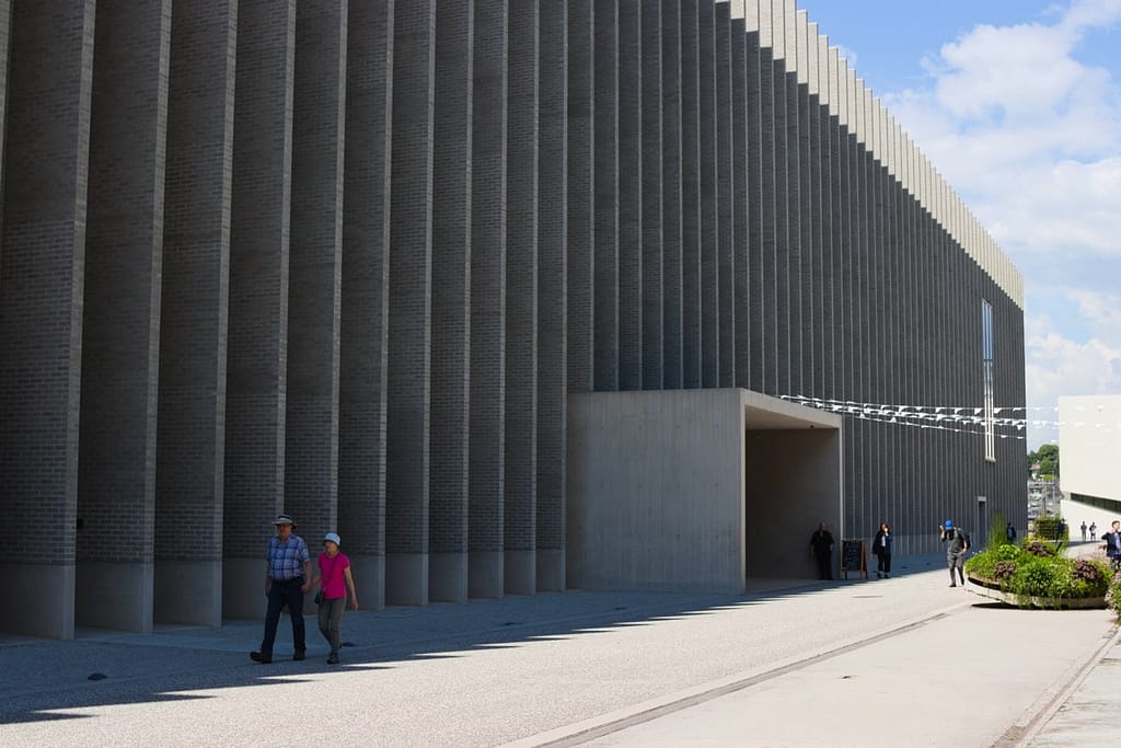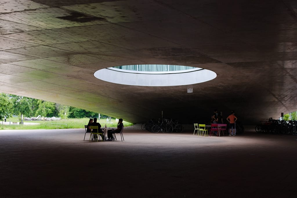 The Cantonal Museum of Fine Arts (CMFA) was the main reason I stopped in Lausanne, however while I was there, I realized I could also make it to the Rolex Learning Center by SANAA, on the EPFL campus outside of Lausanne. The CMFA was just completed in 2022 and is part of Lausanne’s new museum complex that sits right next to the train station. It couldn’t have been easier to get to. It’s a long building with a repetitive brick column-like exterior the length of the building; the entrance and windows exist within this rhythm, creating a continuous unbroken facade. Traces of the former industrial building remain like echoes of the past. It’s a monolithic structure that defines the urban space.