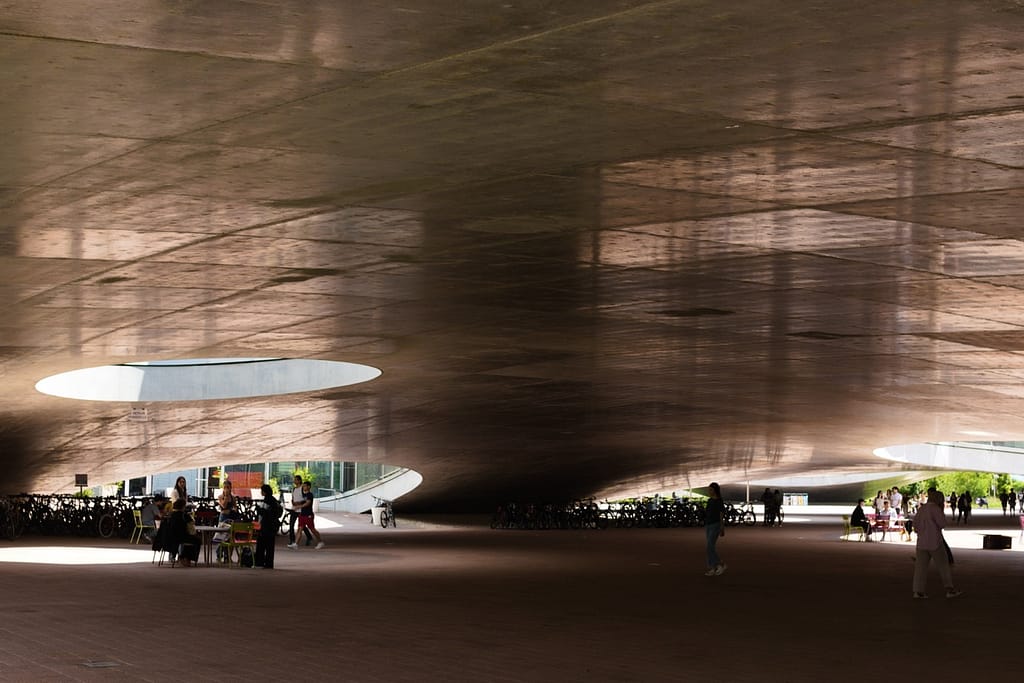 EPFL is located on the outskirts of Lausanne, about a short 20-30min train ride from the city center. It hosts a variety of unique buildings designed by world renowned architects and firms. My main goal was to see the Rolex Learning Center by SANAA, a building my materials professor dedicated an entire class to, but there are other notable buildings as well, like EPFL Pavilions by Kengo Kumo, a world-renowned Japanese architect; the Mechanic Building by Dominique Perrault Architecture; SwissTech Convention Center by Richter Dahl Rocha & Associates; and these modular looking cube buildings from maybe the 60s or 70s that dominate the campus.