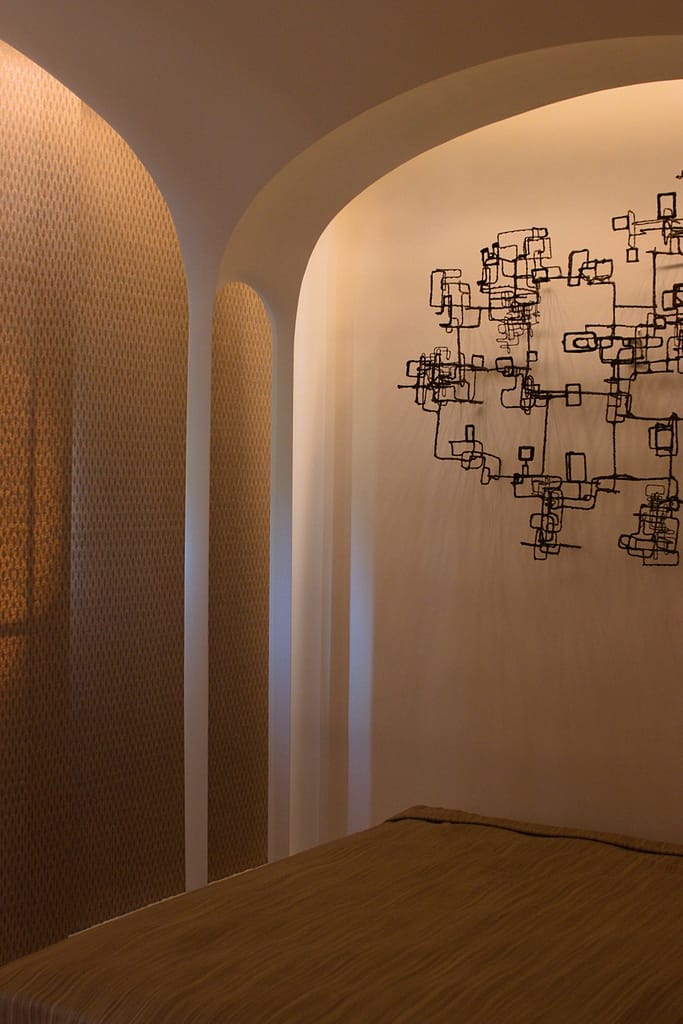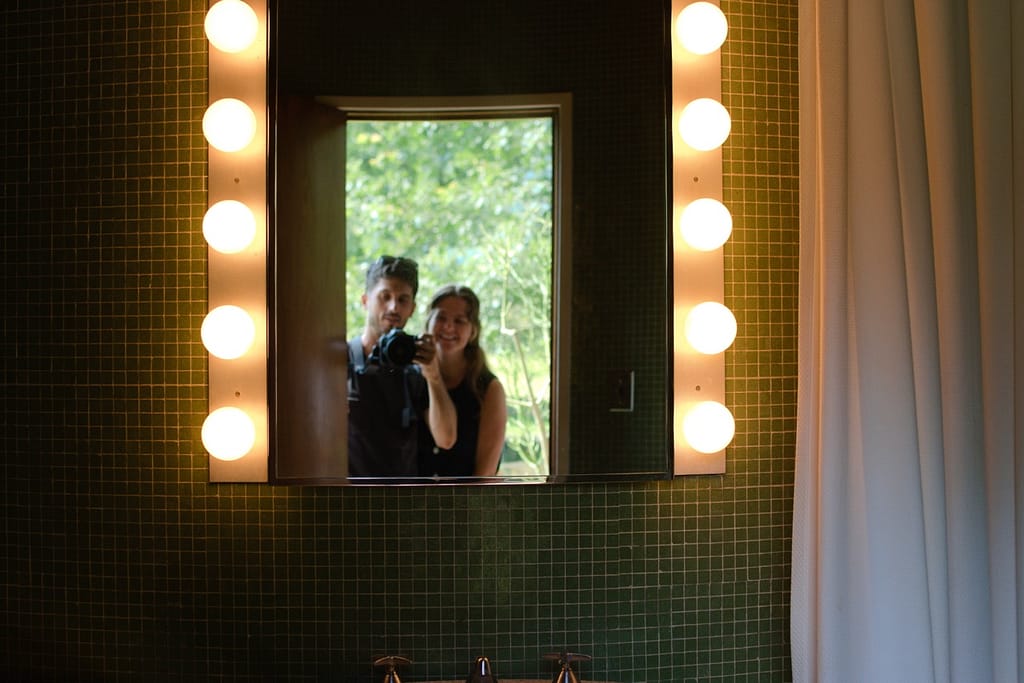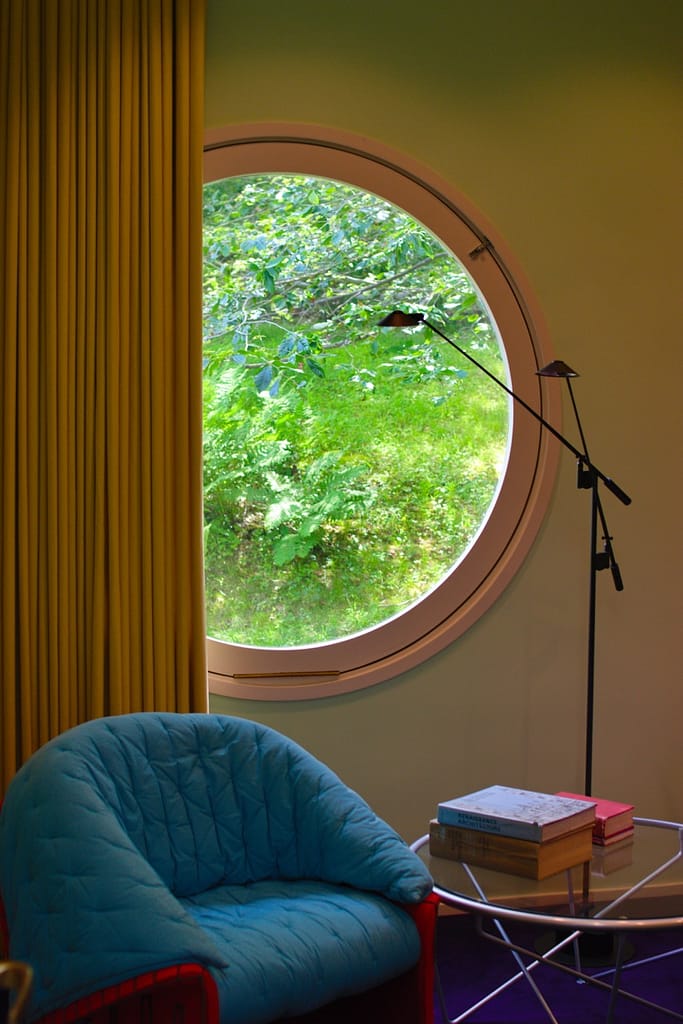 If the Glass House is about transparency, the Brick House is its opposite. While the Glass House is performative, the Brick House is closed off. It is clad entirely in brick. The only openings are three circular windows on the back, facing away from the Glass House. Surprisingly, the inside is highly ornamental, rich in color and extravagant. A mocha-clad marble bathroom made me feel like I had been transported to another time-period.