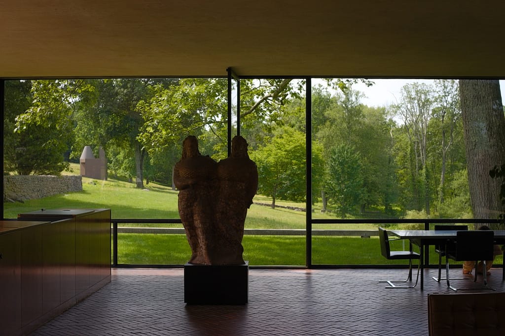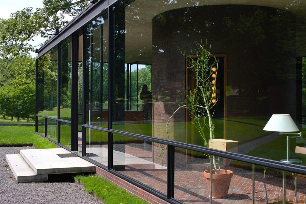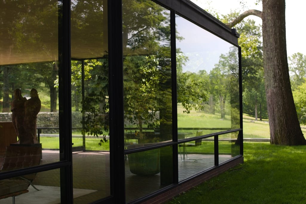 Nestled in the wooded hills of New Canaan, Connecticut, Philip Johnson’s Glass House sits like an ancient Greek temple. Completed in 1949 as his personal home, this 56-by- 32-foot steel and glass structure erases the boundary between inside and outside, transforming the surrounding forest into a living wallpaper. It explores the dissolution of boundaries, transparency and openness.