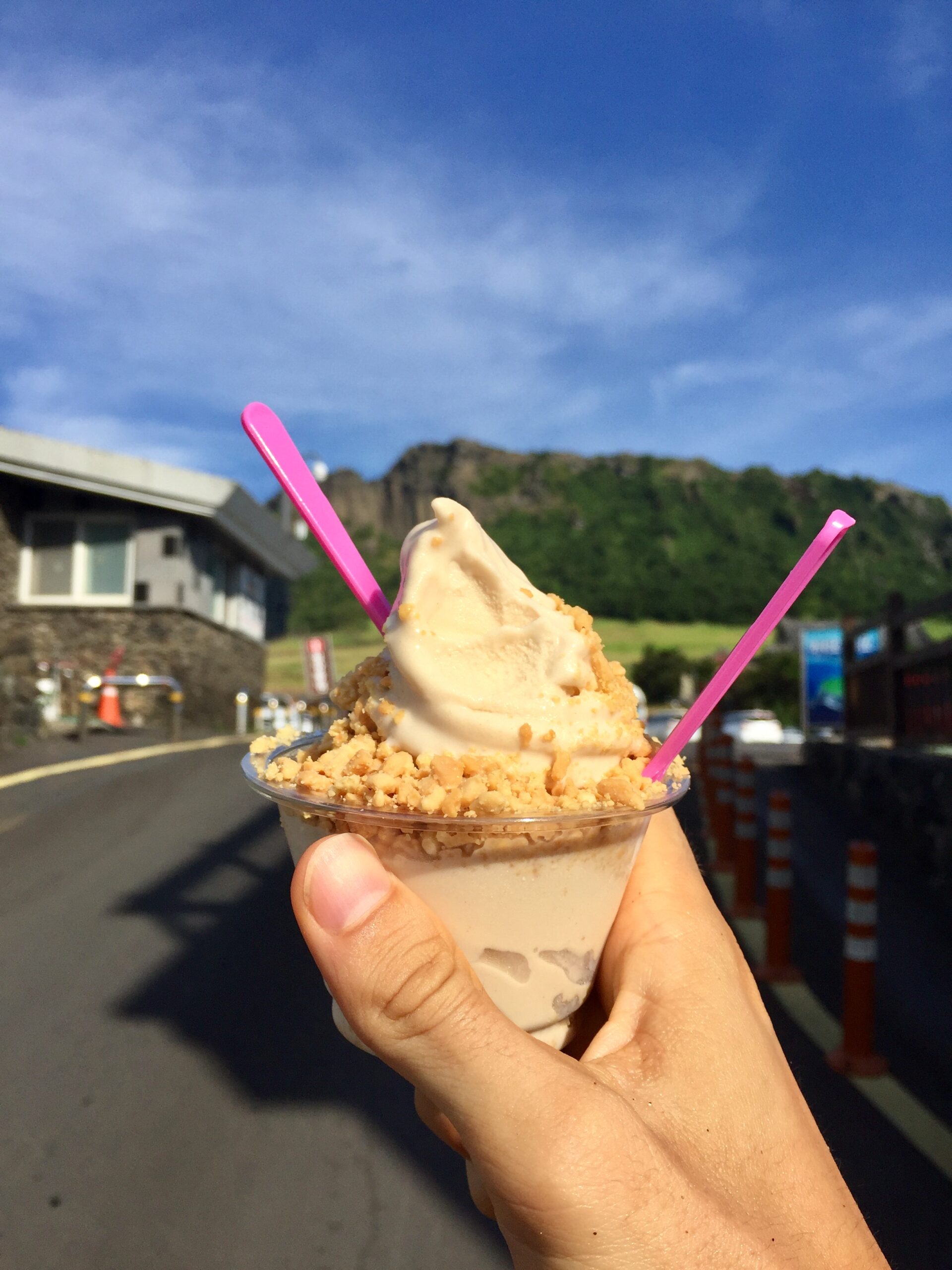 Our plan was to now drive east along the coast to the eastern side of the island where we would spend our next night. We started the day with two failed attempts to find a beach, eventually we found one with a view of sunrise peak and spent the rest of the day there. For lunch we had really good fish and chips. After, we went back to the beach, hung out until it was closer to sunset and then climbed sunrise peak to watch the sunset. But before that, I got peanut ice cream, crossing off two out of three of the foods my friend recommended.