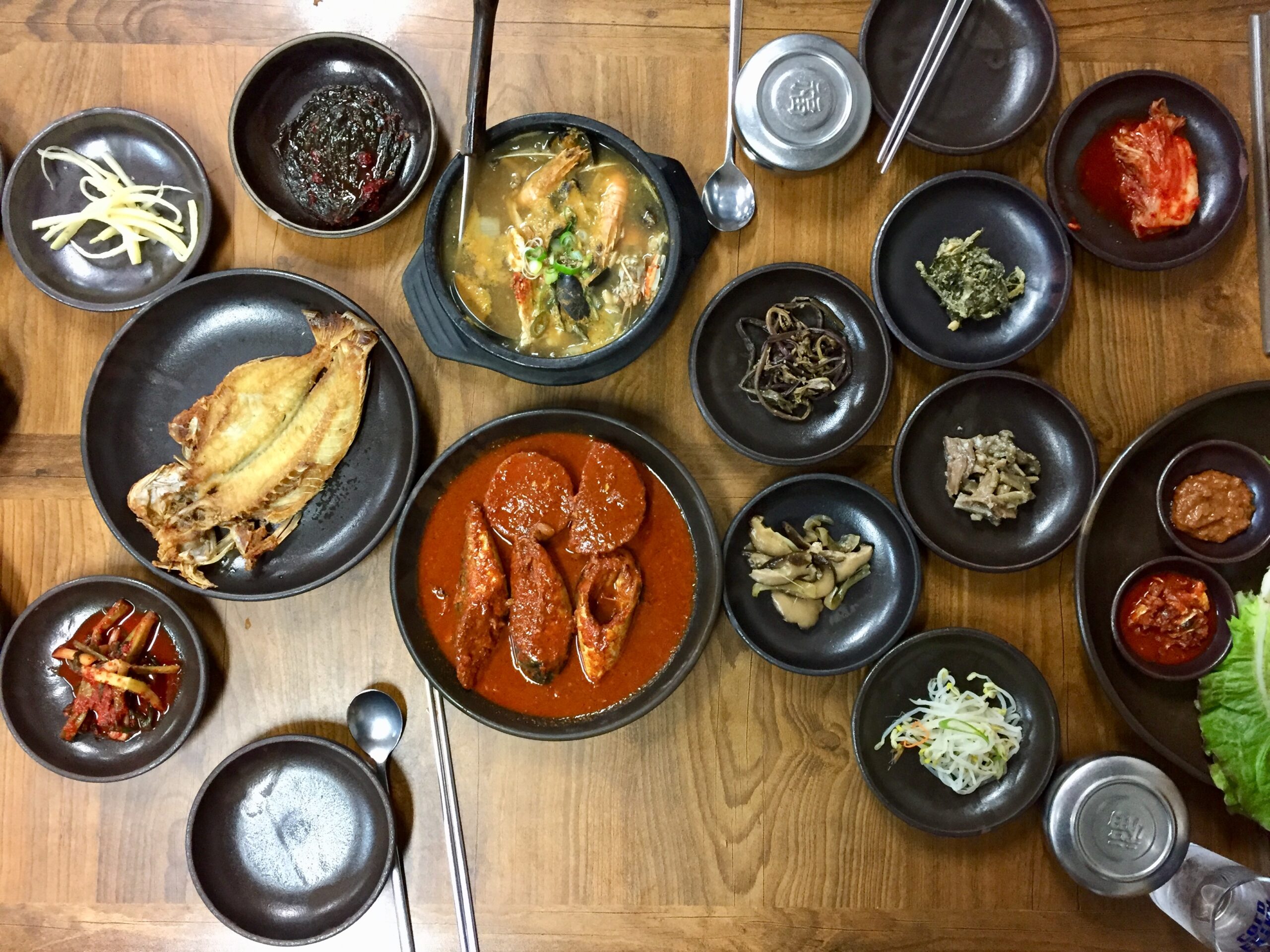 Our plan was to wake up early to see the sunrise, but the night before we checked the weather forecast for Thursday and it showed 99% chance of rain and storms. We woke up to see it anyway. We couldn’t actually see the sunrise, but it wasn’t raining. I did however fall flat on my ass and back stepping off a mossy rock. We then went back to the room and slept. It ended up raining all day so we couldn’t go to a different beach we wanted to see, but we did go to the lava tubes, and the stone park, both of which were incredible. The lava tubes because it’s a natural tube in the earth created by lava flow that looks as if a giant spacewomen burrowed it’s way through and the museum because it was so well done providing history and information on an aspect so important to Jeju. For dinner food item 3 of 3 was crossed off my list. Yunji found us a really good restaurant to try the boney fish; a set menu and $13.50 a person for a delicious meal well worth more.