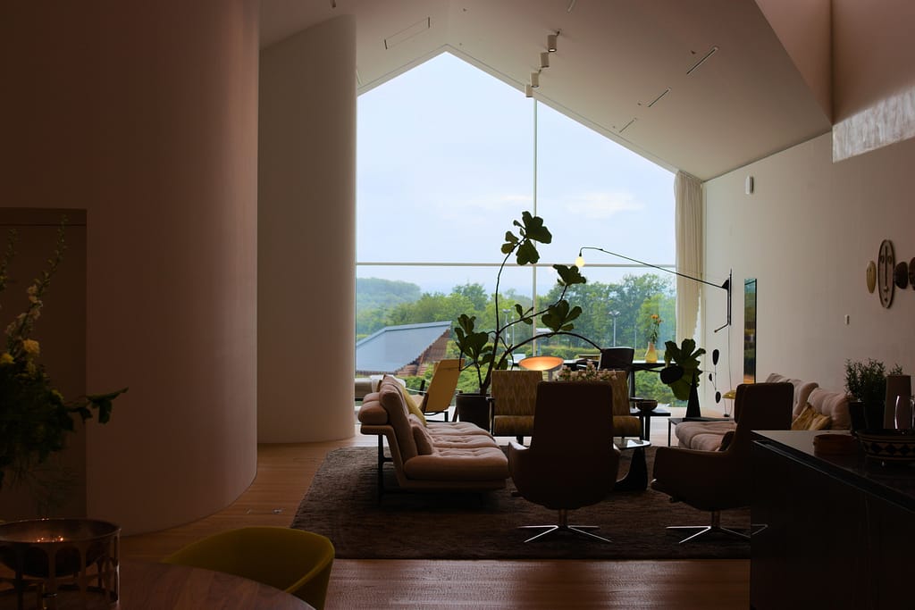 In addition to the Vitrahaus and a newer building from 2016 by H & dM, the Vitra Campus consists of several buildings by notable architects. It’s feels like a graveyard of individual epitaphs. The buildings stand as individual markers of the unique architectural styles of each architect without much relation to the others. They stand as individual objects in a somewhat-open field in the countryside. With that said, it is amazing to see the buildings of world-famous architects in such proximity to each other. Among the highlights are Tadao Ando’s Conference Center, his first U.S building, Zaha Hadid’s Fire Station – her first major built project, her paintings in three-dimensional form come to life. I had no idea it was on the Vitra Campus, so to see it was a major surprise.
