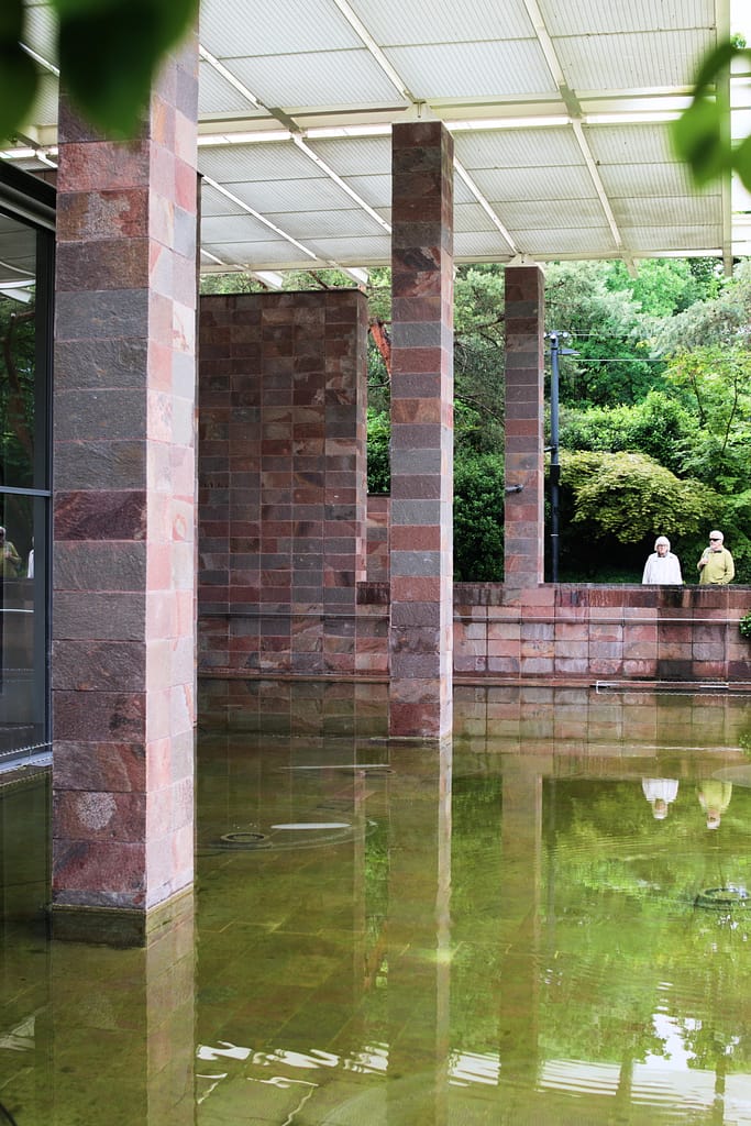 In Basel, he designed the Beyer Foundation Museum, which opened to the public in 1997. The museum’s most prominent feature is a series of glass-walled galleries that allow an abundance of natural light and a connection to the outdoors blending the two, creating a seamless connection between art, architecture and nature. The ceiling is a transparent screen that allows indirect light into the gallery spaces and creates the sensation of a room with three sides. It was one of my favorite buildings on the trip, both for its architecture and its exhibitions.
