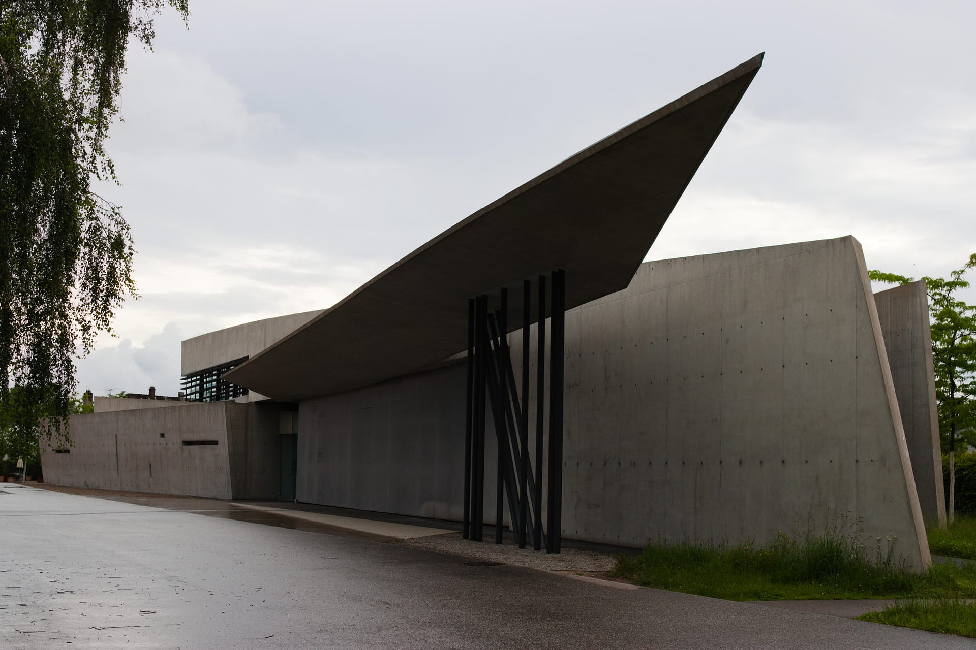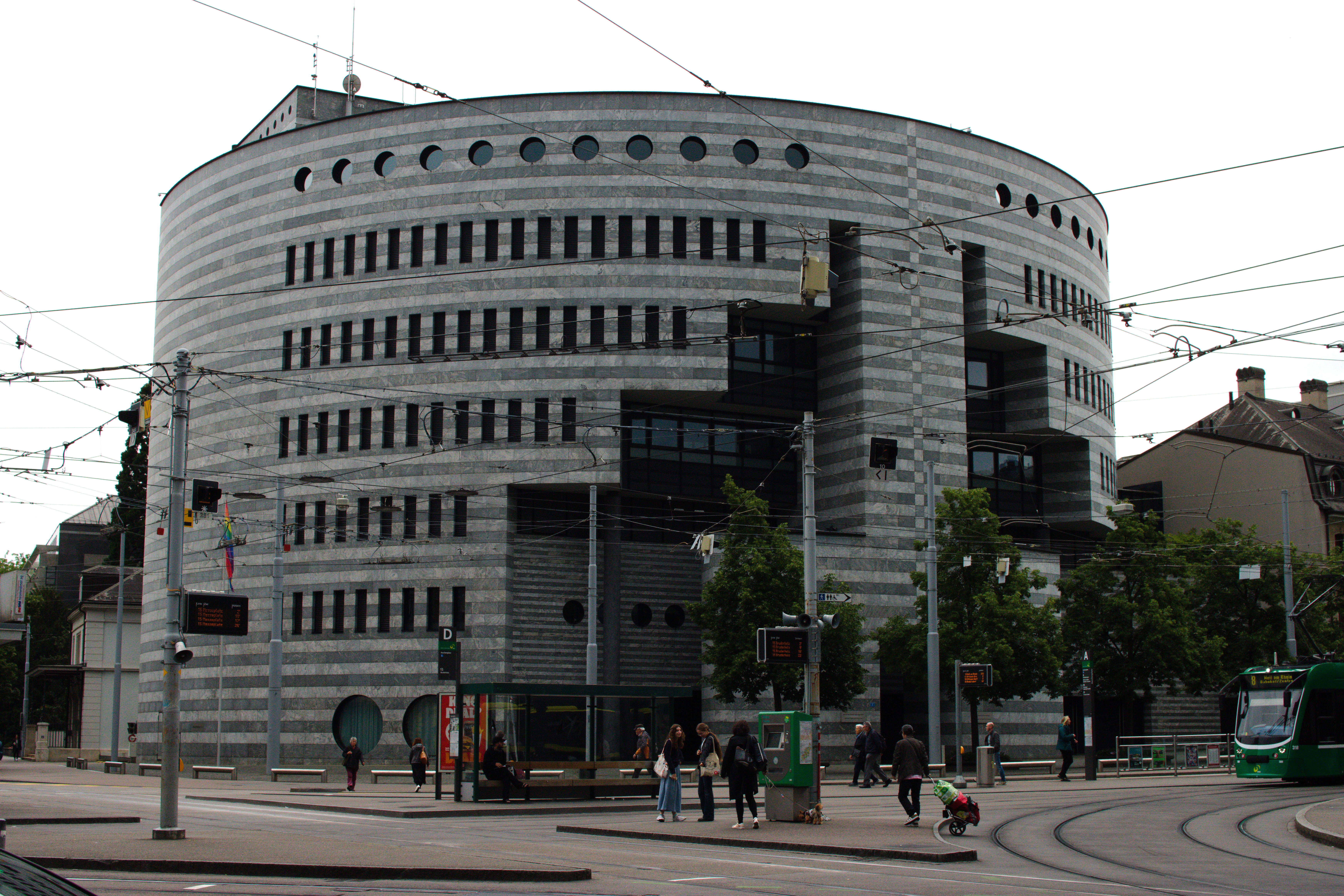 New Hall by Herzog & de Mueron, also known as 213 Messe Basel was completed in 2013, is an exhibition center and it is a prime example of architecture as urban planning. The building spans across a public space that includes a tram stop, with its most striking feature being a large circular opening to the sky. Not only does it provide protection from the elements, it defines the space, creating a semi-enclosure that can be used for outdoor markets, concerts and other events. I only passed through it, however, I found the space too expansive and impersonal, reminiscent of the modernist designs of the 20th century that prioritized scale. It felt like a giant conference center and could have done better providing places to sit, relax, and rest – a couple of trees would have been nice.