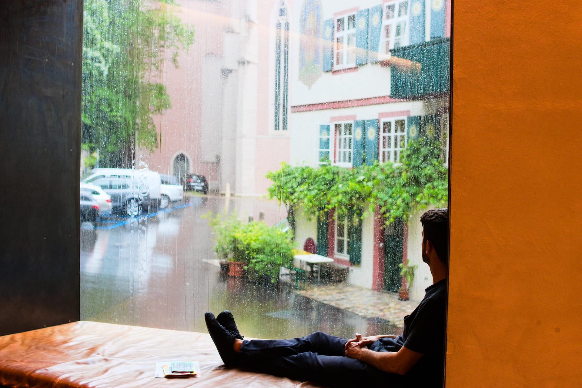 Basel Youth Hostel is located in a former silk factory. It was renovated to become a youth hostel and is a fantastic mix of old and new. It was too expensive for us to stay there, around $75 a night for a dorm room (which is the highest I’ve ever seen), so we stopped by on our first day. We got there just in time because as soon as we entered; it started pouring and continued to pour. The rain didn’t look like it was going to stop, but we left our shelter to explore.