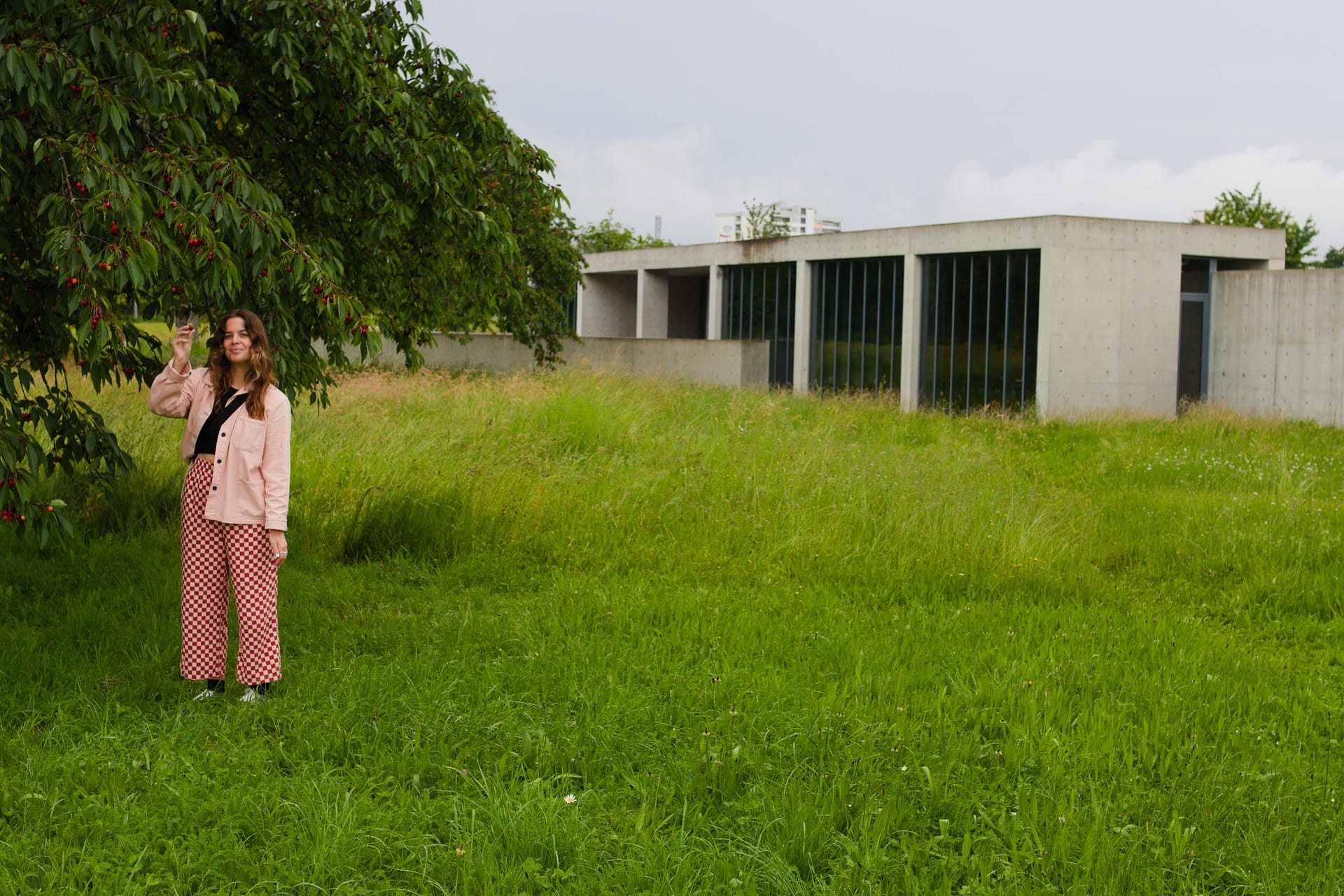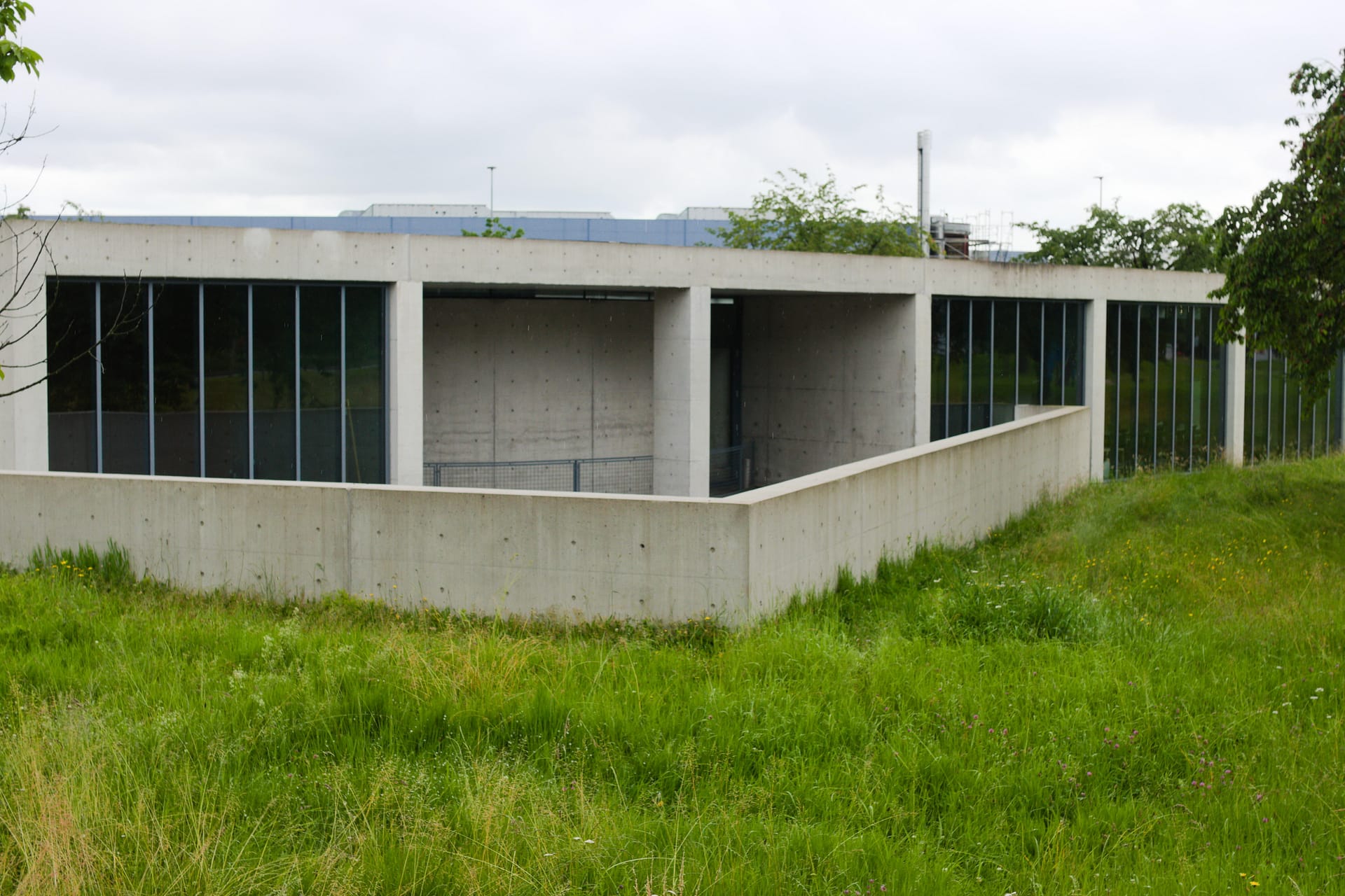 The Institute for Hospital Pharmaceuticals, completed by Herzog & de Mueron in 1998 is a hospital buliding. A unique aspect of the building is its envelope of green screen-printed glass with a pattern of small green dots. Depending on the weather, the façade alternate between revealing glimpses of the interior or presenting it as a solid. My time in Switzerland consisted of rainy days alternating by the hour, so for me it was nothing more than a solid wall of glass. Even up close, the inside wouldn’t reveal itself to me.