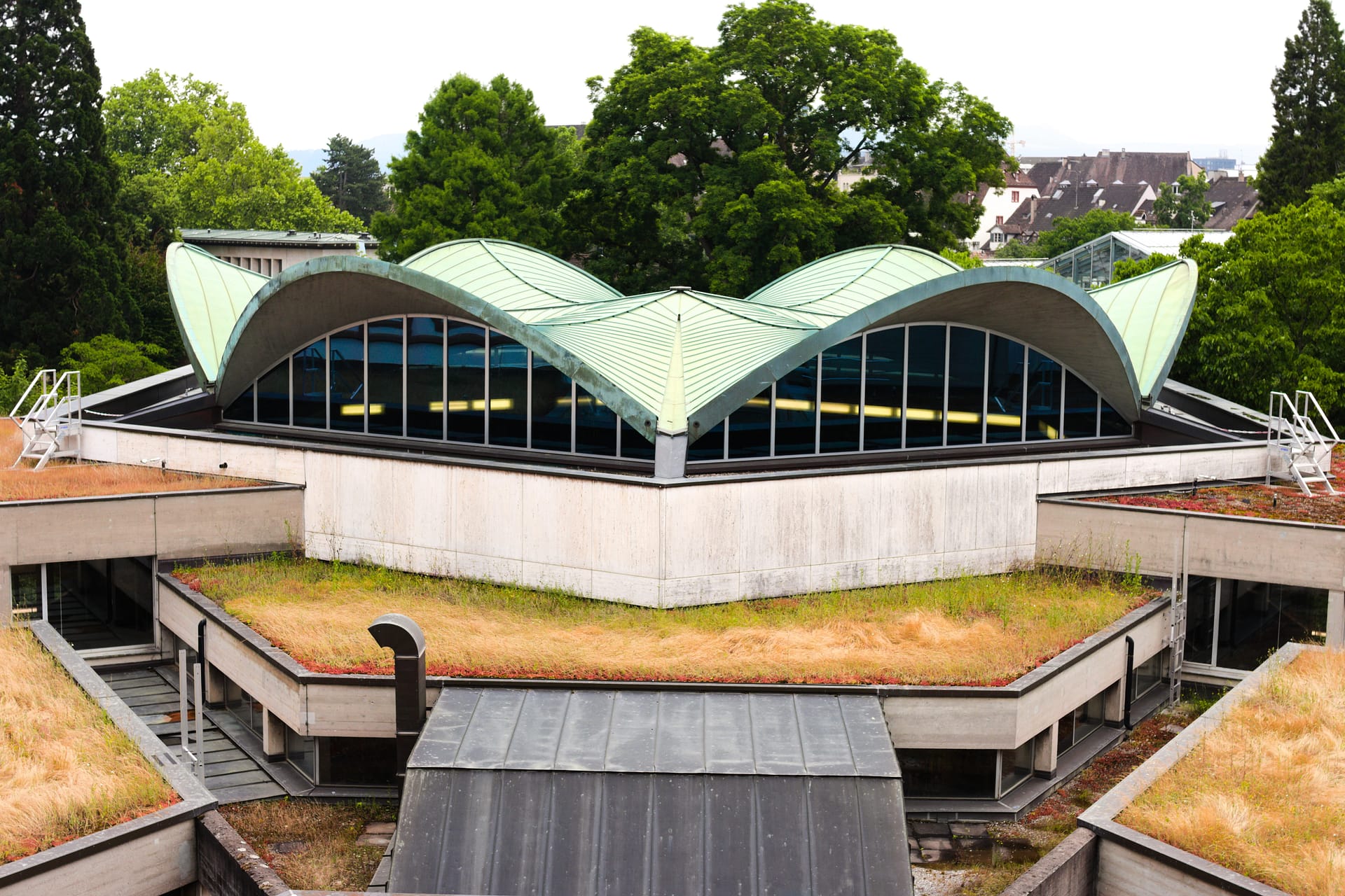 The University of Basel sits within the city and has a student population of 12,896. We saw two buildings on the campus: the University of Basel Botanical Garden and the Basel University Library. The botanical garden is one of the oldest in the world, established in 1589 and at its center is a beautiful steel and glass structure. The Basel University Library is both historic and modern. At its center is an elegant concrete domed reading room, almost floral-like, perhaps a nod to the Botanical gardens directly behind it. A concrete sculptural staircase connects the space.