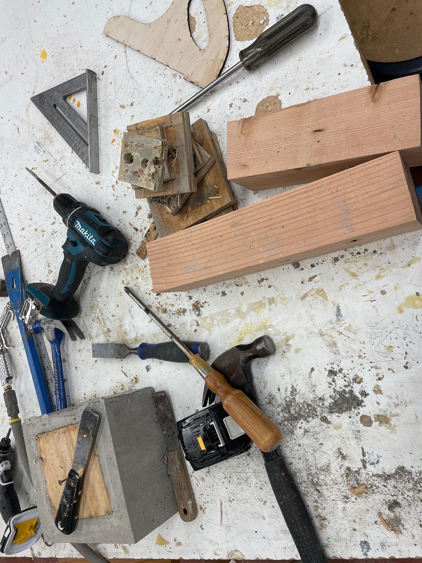 Taking off the formwork was so incredibly difficult, I almost wasn’t going to do it for the second block. I used every tool available in the wood shop for two hours straight, and that was only for one block. At moments, it seemed like no progress was being made, but slowly and through sheer force and determination, I removed the wood. They’re not pretty, but they’re handcrafted cement breeze blocks. I have such a profound respect for buildings that are made of concrete and for those doing the work.