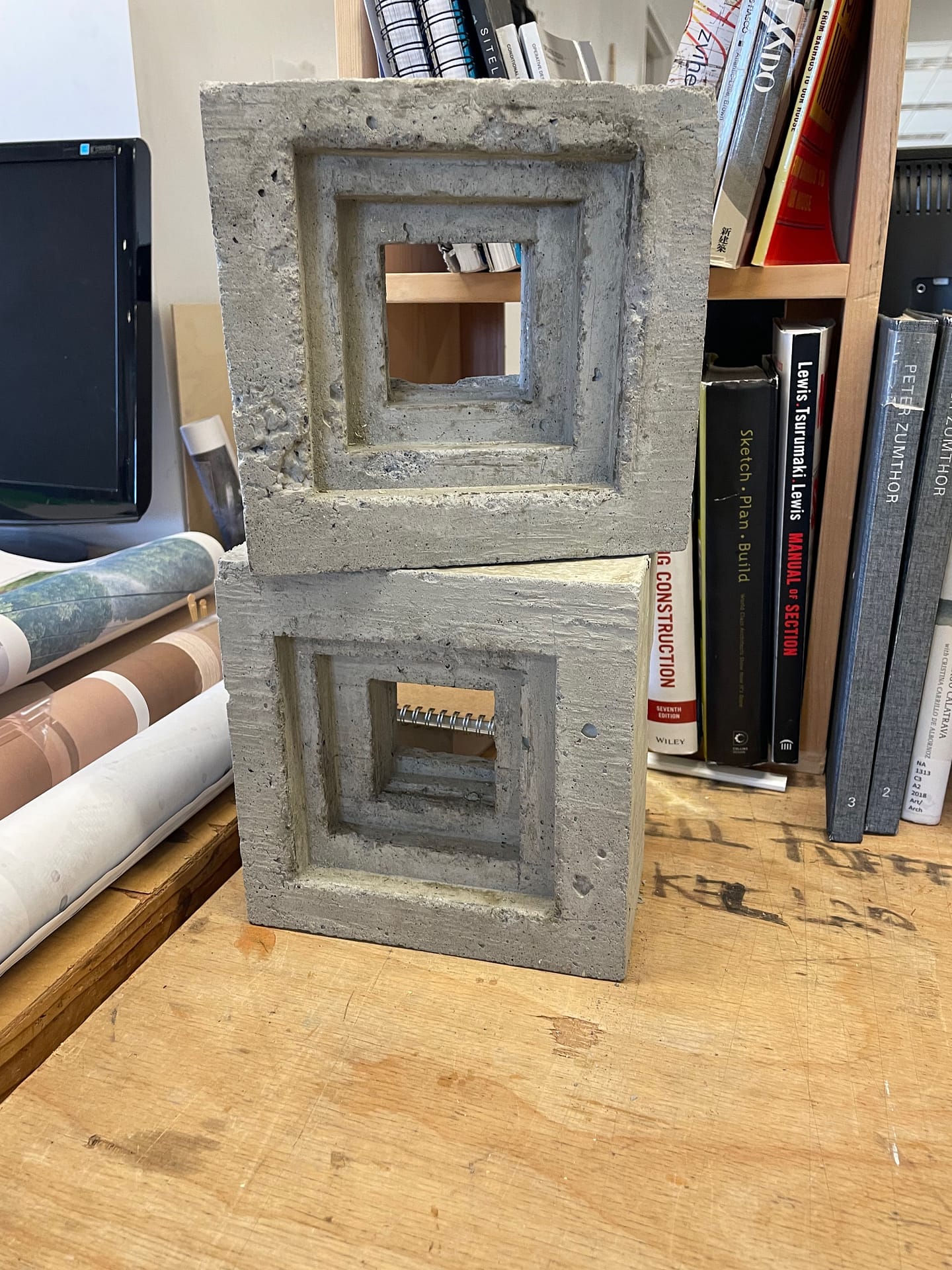 An architect must know the materials they are using. It’s important that they learn how materials feel in the hand, how they look in a building, how they are manufactured or created, how they are put into place and how they perform and age with time. The physical properties of the materials is one of the drivers of design and the creators of form. For our materials and construction class, we had to do a material study project. I chose to use concrete and to make concrete breeze blocks. A breeze block is a patterned block, used as a screen or shading device, that allows the wind through.