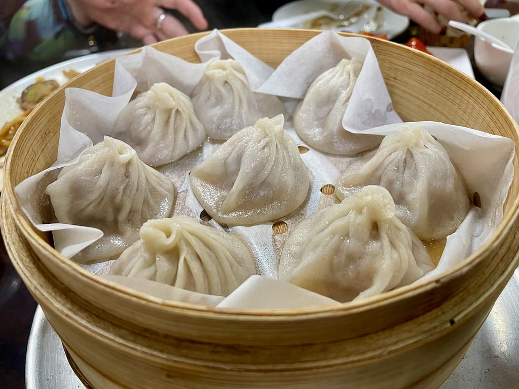 For dinner, I was with my sisters and cousins. We ate at a restaurant called Deluxe Green Bo in the heart of Chinatown. It was recommended by my sister’s friend who had lived there. Their soup dumplings were the main pull. During the day, I happened to walk by it twice and each time there was a line down the block, however when we went for dinner there was hardly any. We had 7:00pm reservations and we had to wait until a table cleared. The place is small, maybe enough room for 50 tightly packed people, my cousin at the end of the table was in the entrance and the couple next to us might have well been a part of our table. Unfortunately, they didn’t have vegetarian soup dumplings (I should have gotten them at lunch, but I was saving them for dinner), but they did have fantastic scallion pancakes. I also had vegetarian dumplings that were okay, while my cousins and sisters tried an array of soup dumplings and dishes. According to them, the dumplings weren’t that great.