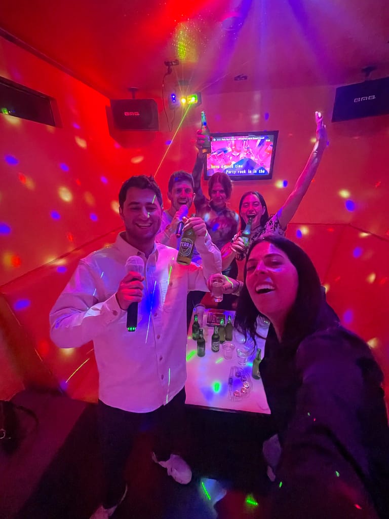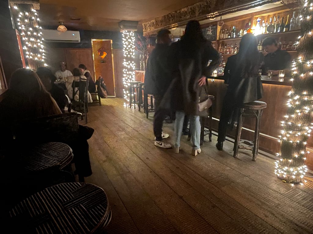For drinks we went to The River. It is a nondescript easy to miss bar slightly away from the main street of Chinatown. Its lack of outward facing windows with a dark green painted wooden facade, make it look like a storefront waiting for a tenant. It’s a cozy, dimly lit, intimate space filled with wood accents, wood paneling runs 3/4 of the wall height around the room, while the upper quarter is filled with rural murals of American landscapes. The interior columns are a facsimile of ionic columns made from actual trees. It’s dark enough that you can hardly see the tables in the corner. The atmosphere was great, but I can’t imagine the drinks were cheap. We stayed there for one and then made our way uptown to Koreatown for karaoke bringing an end to my day in Chinatown.