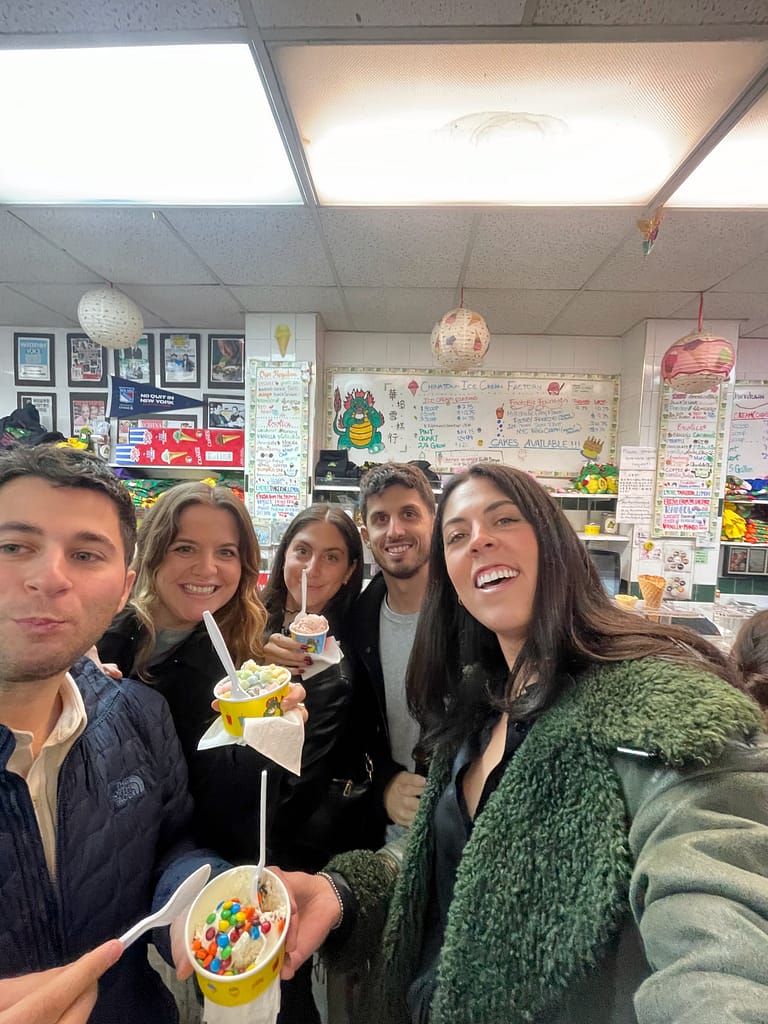 For dessert, we went across the street to The Original Chinatown Ice Cream Factory. A tiny famous ice cream store with a unique variety of flavors visited by the likes of baker Duff Goldman. They too had a line out the door and down the block, luckily the scaffolding protected us from the rain. They had a variety of unique flavors like: taro, almond cookie, pandan (a tropical plant), lychee, don tot, as well as more traditional flavors like chocolate, orea and mint chip. I got one scoop of almond cookie. One scoop was $7.50, the same price of a basket of soup dumplings across the street! But it was delicious.