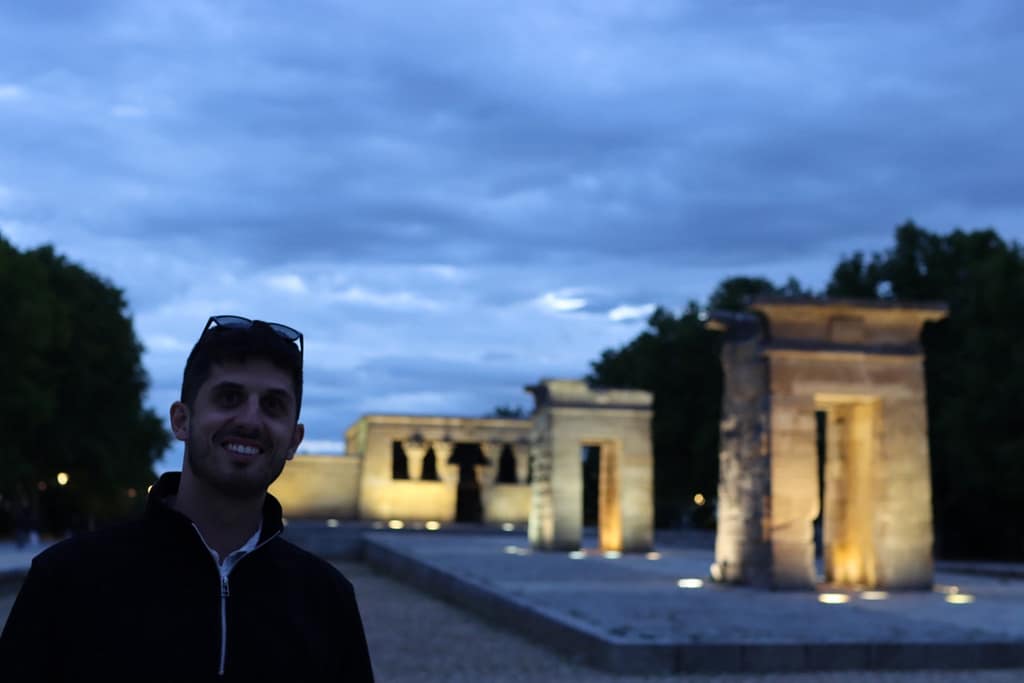 Another friend I was able to see was Tacho. Tacho is the nephew of one of the teachers at the school and she put us in contact when I was living there. Tacho, didn’t live in Tomelloso, but rather in Madrid and over the years he became a close friend. If he was in Madrid or when he came to Tomelloso, I’d see him. In my recent visit, I met up with him for lunch the day I arrived to Madrid and then later that evening we went to a rooftop bar with a friend of his. I had never been in any of Madrids rooftop’s before. When I returned back to Madrid on Monday, I stayed at his apartment and memories came flooding back. That night I persuaded him to try a vegetarian Spanish restaurant and we took a walk to the Egyptian temple, something I had always wanted to see, but never had.