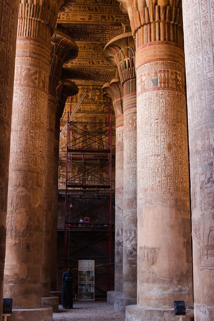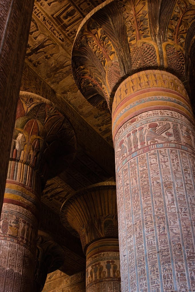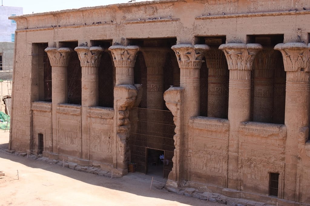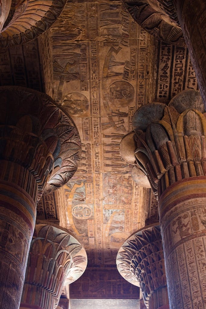 The Temple of Khnum was the smallest of the three, just a single monumental structure. Within, it features a stunning hypostyle hall with 24 intricately carved columns. The temple is magnificent, the walls and ceilings retain vibrant traces of original colors, offering an amazing insight into what the temples looked like when they were originally built.