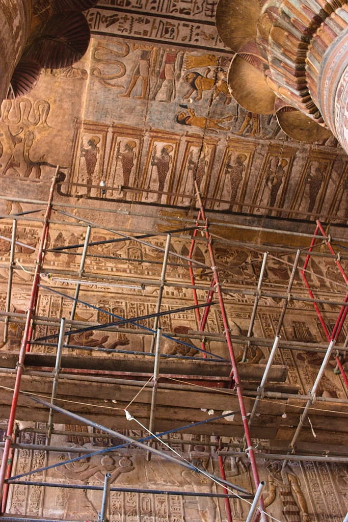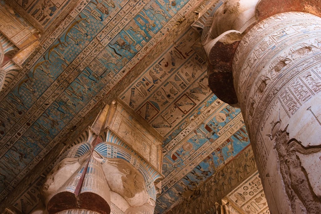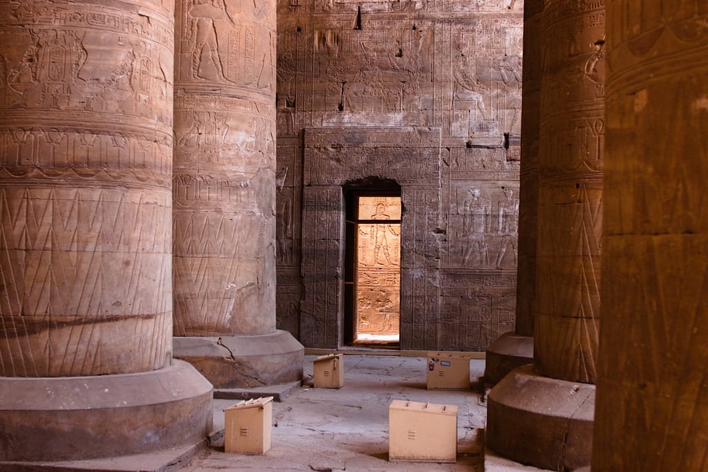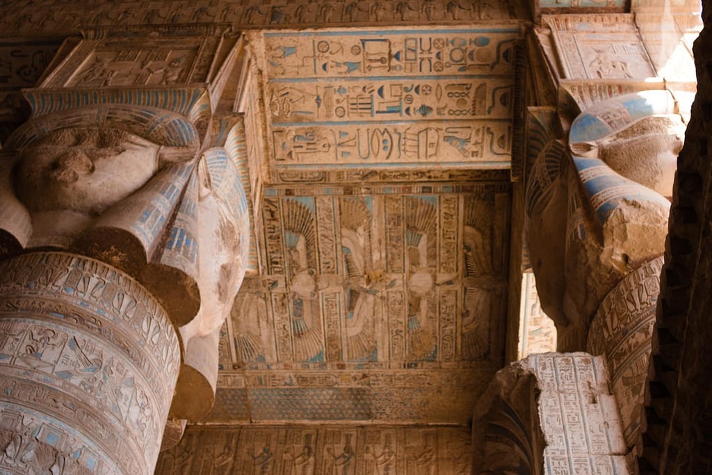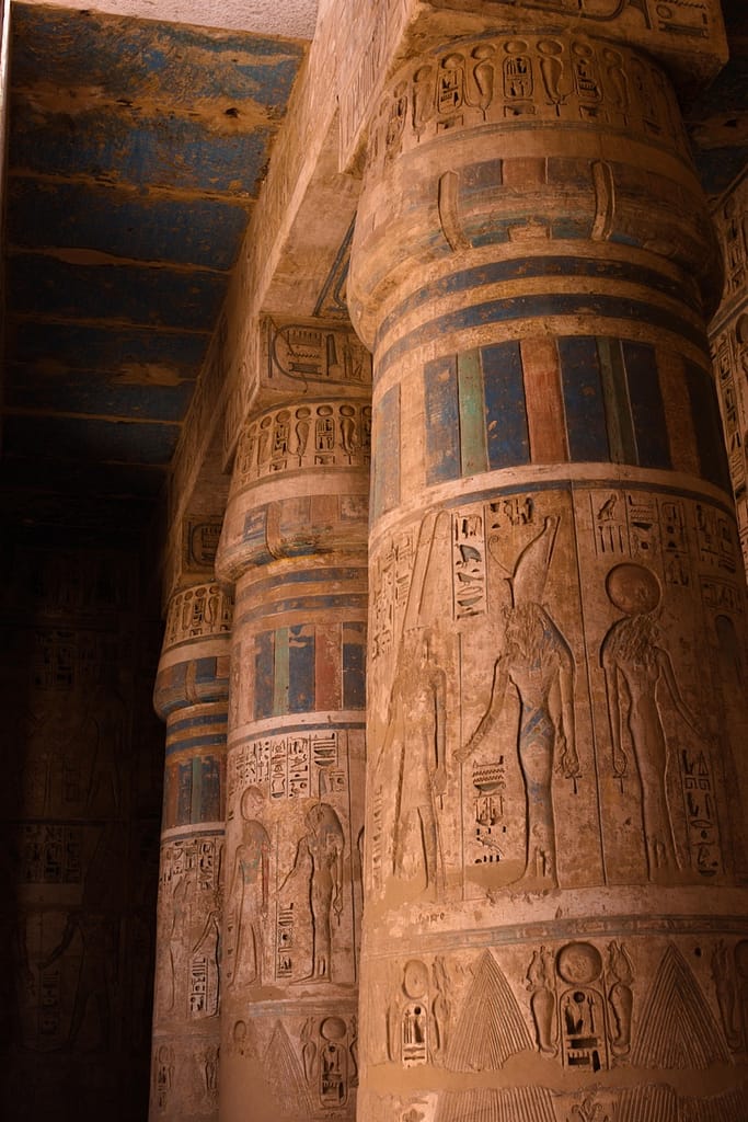 The Temple of Khnum was the smallest of the three, just a single monumental structure. Within, it features a stunning hypostyle hall with 24 intricately carved columns. The temple is magnificent, the walls and ceilings retain vibrant traces of original colors, offering an amazing insight into what the temples looked like when they were originally built.