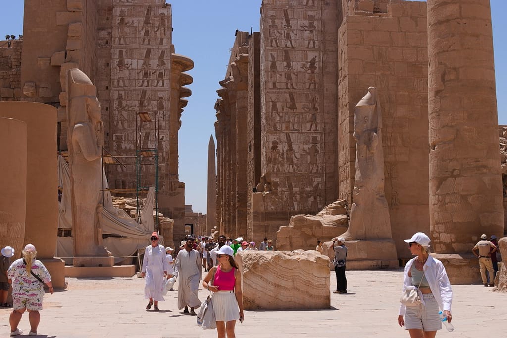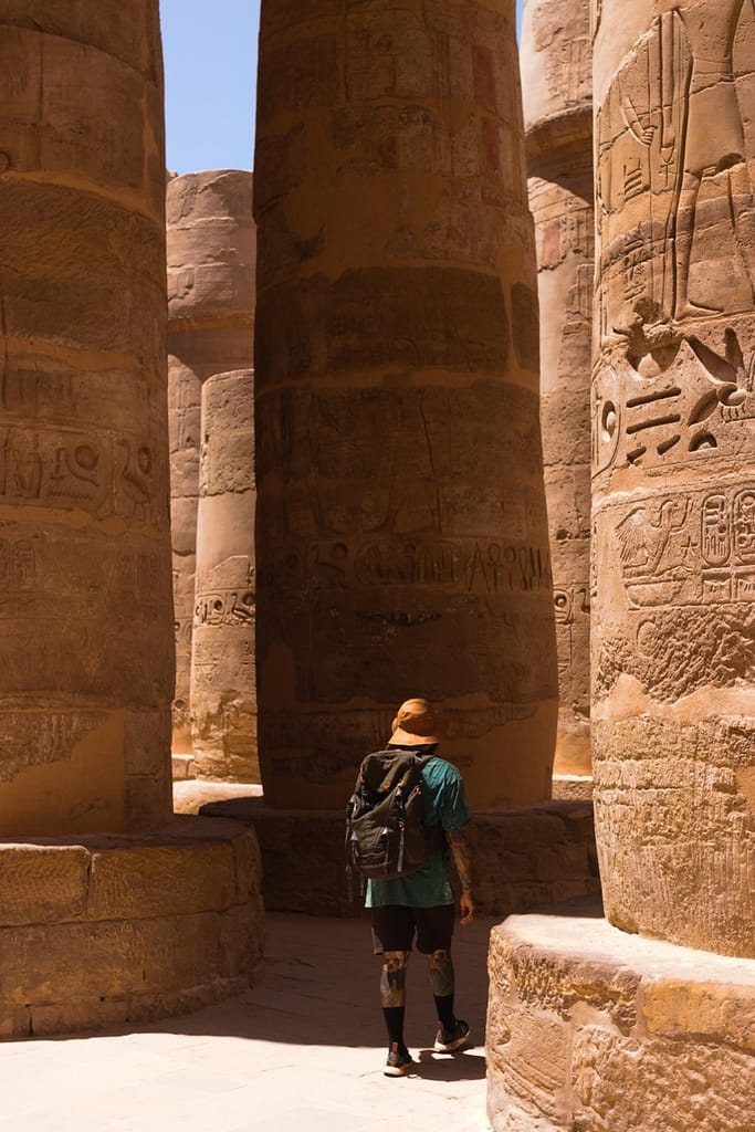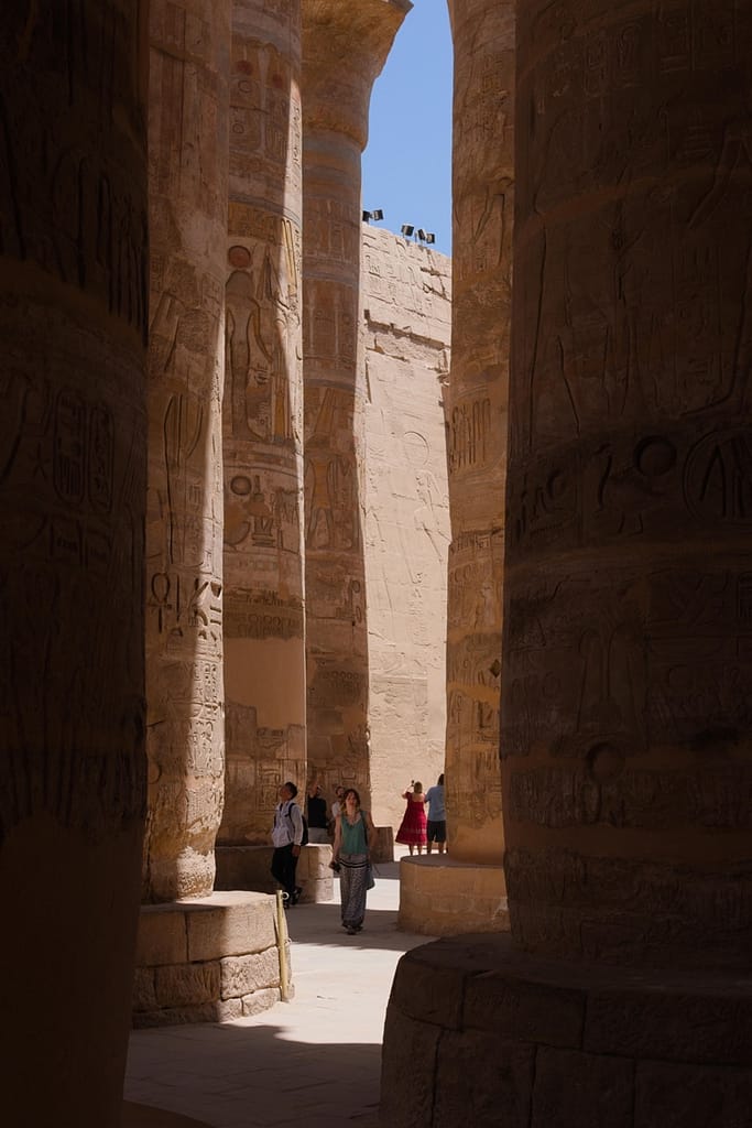 Karnak Temple, located in Luxor, is one of the largest and most impressive temple complexes in the world. It features towering columns, intricately carved walls, and massive statues and the Great Hypostyle Hall, with a forest of 134 colossal columns. I met my New Zealand friend out front in the morning and we spent the day exploring.