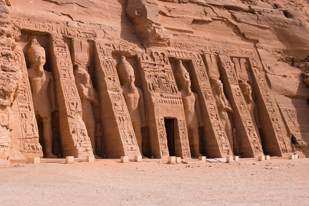 The larger temple features two massive rock-cut temples built by Pharaoh Ramses II during the 13th century BC. The larger temple is dedicated to himself, while the smaller temple honors his wife, Queen Nefertari.