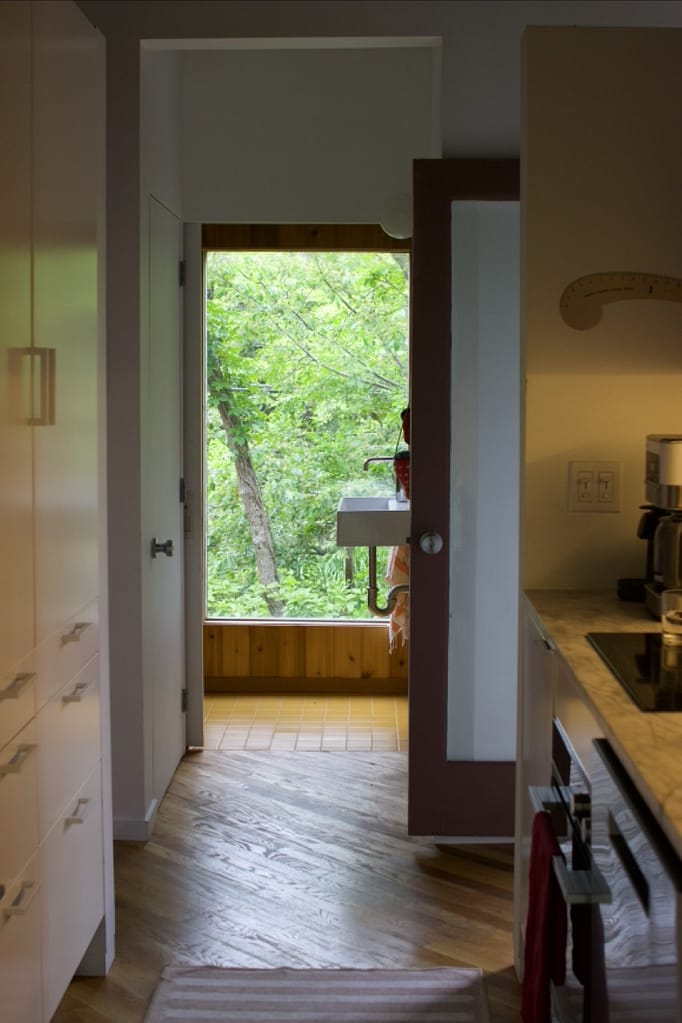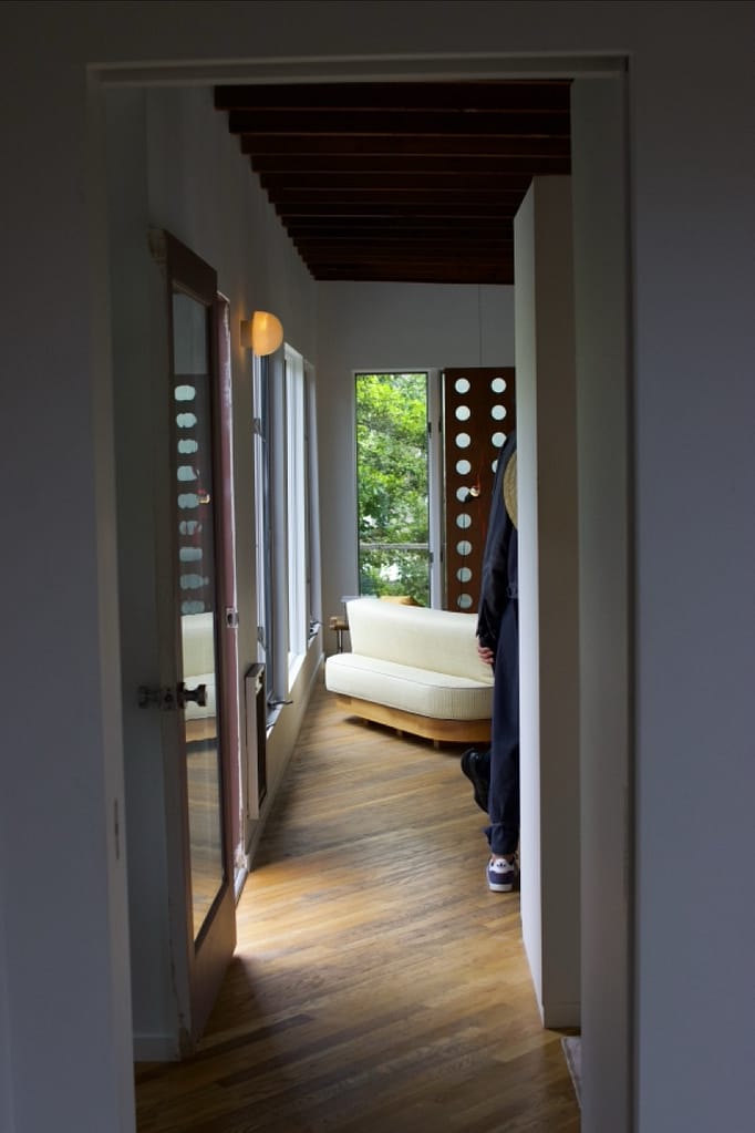 The layout was mostly open, but with small, intentional moments of surprise. One detail that stuck out was the showers. The primary and guest bathrooms share an opaque glass wall. So if two people were showering at the same time, they’d see a blurry silhouette of the other, private but playfully voyeuristic. A reflection of Fire Island’s architectural and social spirit.