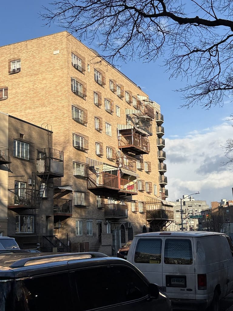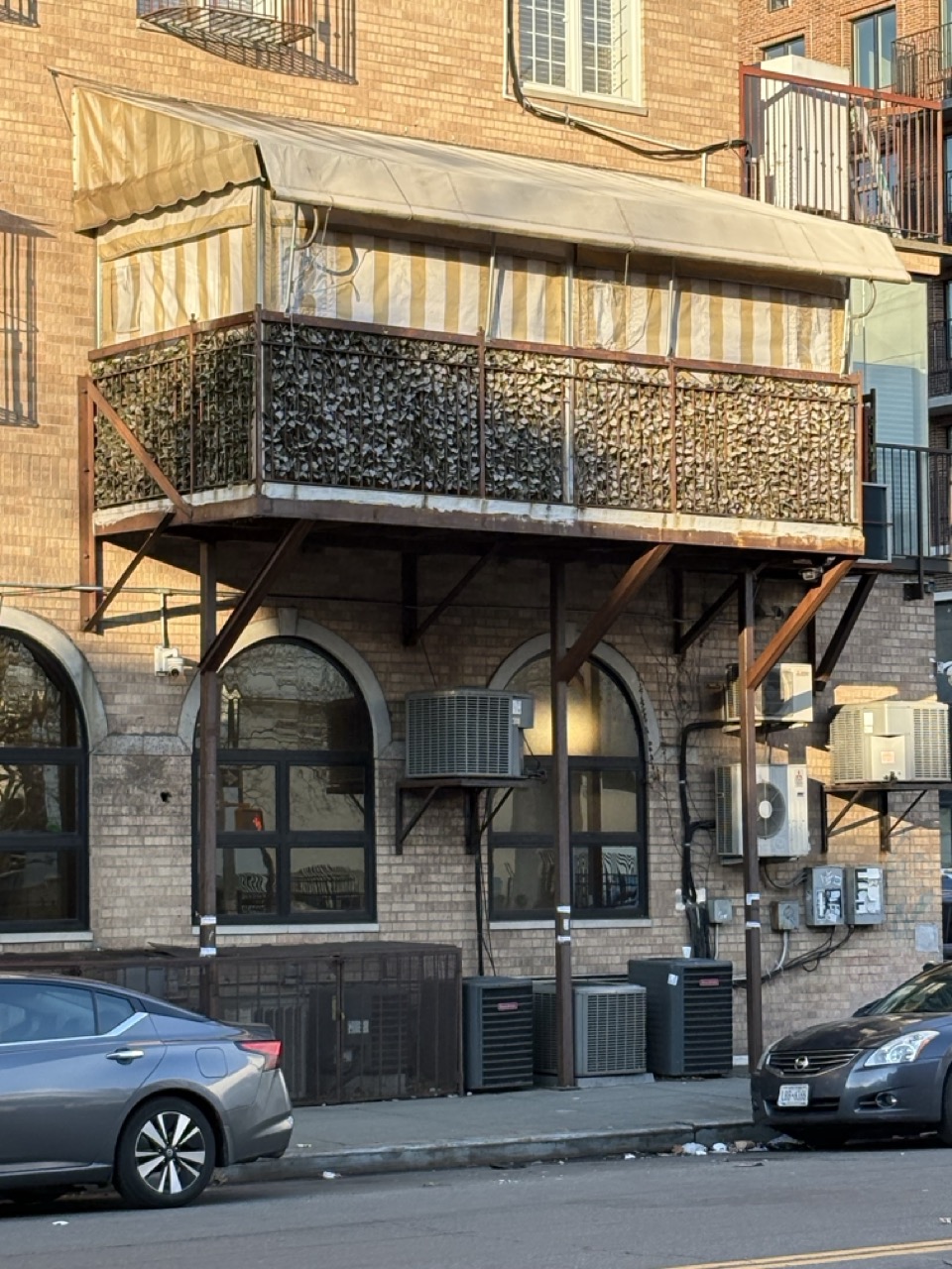 The most prominent feature of Hasidic architecture is the outdoor balcony. Once you start noticing them, you can’t stop. They project off second and third floors, often extending deep into the yard or hovering over side setbacks and the sidewalk. Some appear to cantilever far beyond what feels structurally comfortable and far beyond what is allowed. Others are supported by slender steel posts or wood framing, sometimes without visible cross bracing.