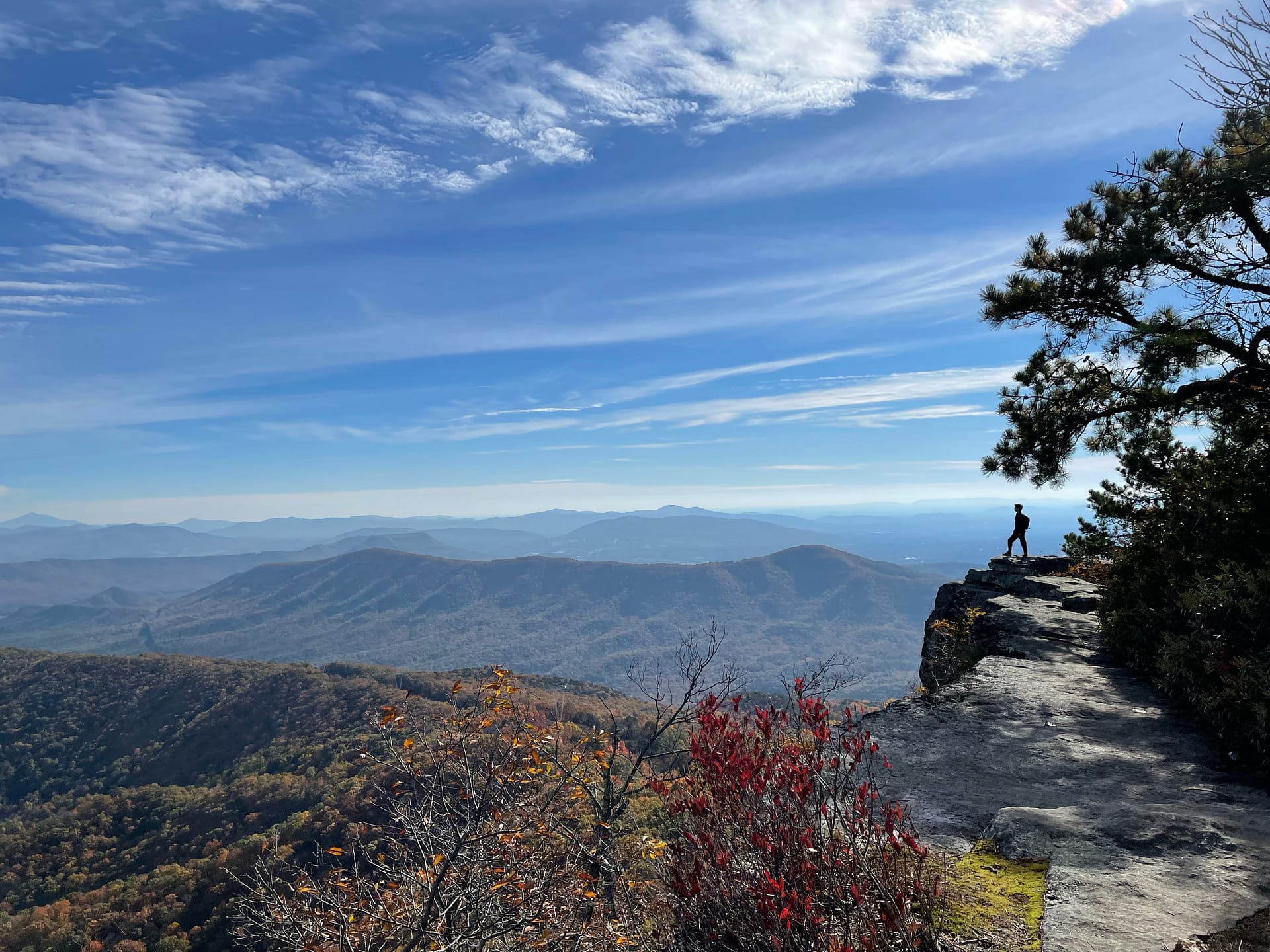The least trafficked hike I’ve done and probably less visited amongst ones in the area due to its limited parking area (there was room for only two cars). It’s a 4.0-mile out-and-back trail with an intense steep beginning, but after that it’s relatively flat. It leads to a pretty beautiful view of the surrounding area. Not like bald knob, but beautiful nonetheless.