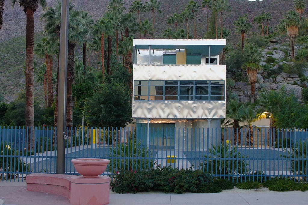 - Aluminaire House. A 3-story case study house designed by Lawrence Kocher and Albert Frey in 1931. It was the first all-metal house in the United States. For many years it was displayed at architecture shows, installed at multiple locations until it eventually it had nowhere else to go. It sat in a shipping container in storage until it was brought to Palm Springs and reassembled in 2023. Here’s a short video on it.