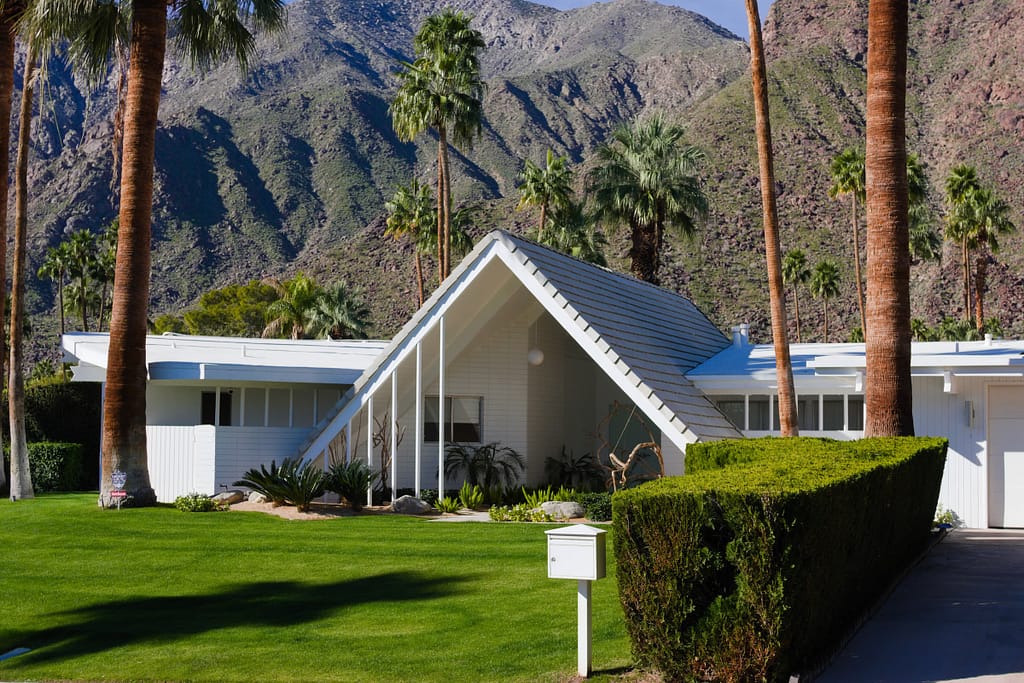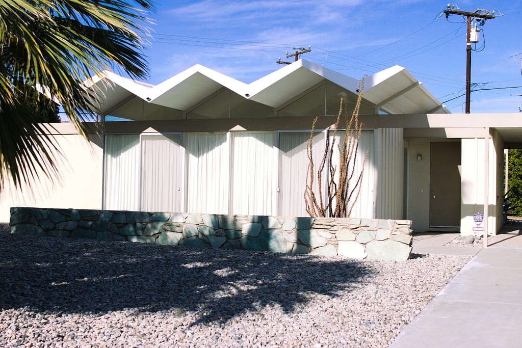 - Palmer and Kristel Houses. The pair behind the Elvis Honeymoon House, a partnership with a construction company, resulted in more than 2,200 homes across the Coachella Valley, including whole neighborhoods like Twin Palms Estates and Racquet Club Estates. Their houses became synonymous with mid-century modern design: butterfly roofs, minimal ornamentation, and large glass windows. They shaped what Palm Springs looks like today.
