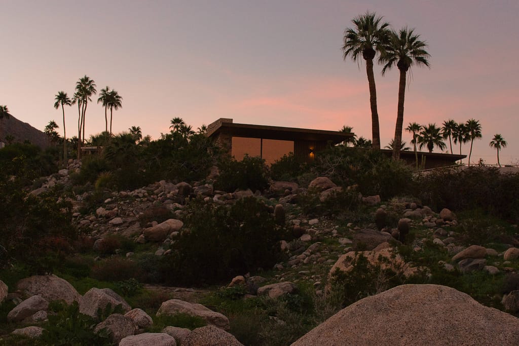 - Edris House. Built in 1954 by E. Stewart Williams, who had designed the Frank Sinatra House years earlier. The Edris House stands as a defining example of the Desert Modern style. Williams reportedly said the house should look “as if it grew out of the ground rather than falling out of the sky” and it does. It was probably one of my favorite houses that I saw. It commands a beautiful view of the valley below and beautifully captures the lingering rays of sunlight during golden hour.