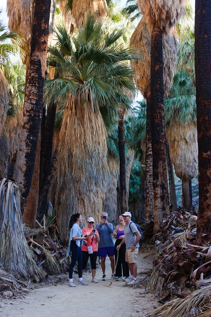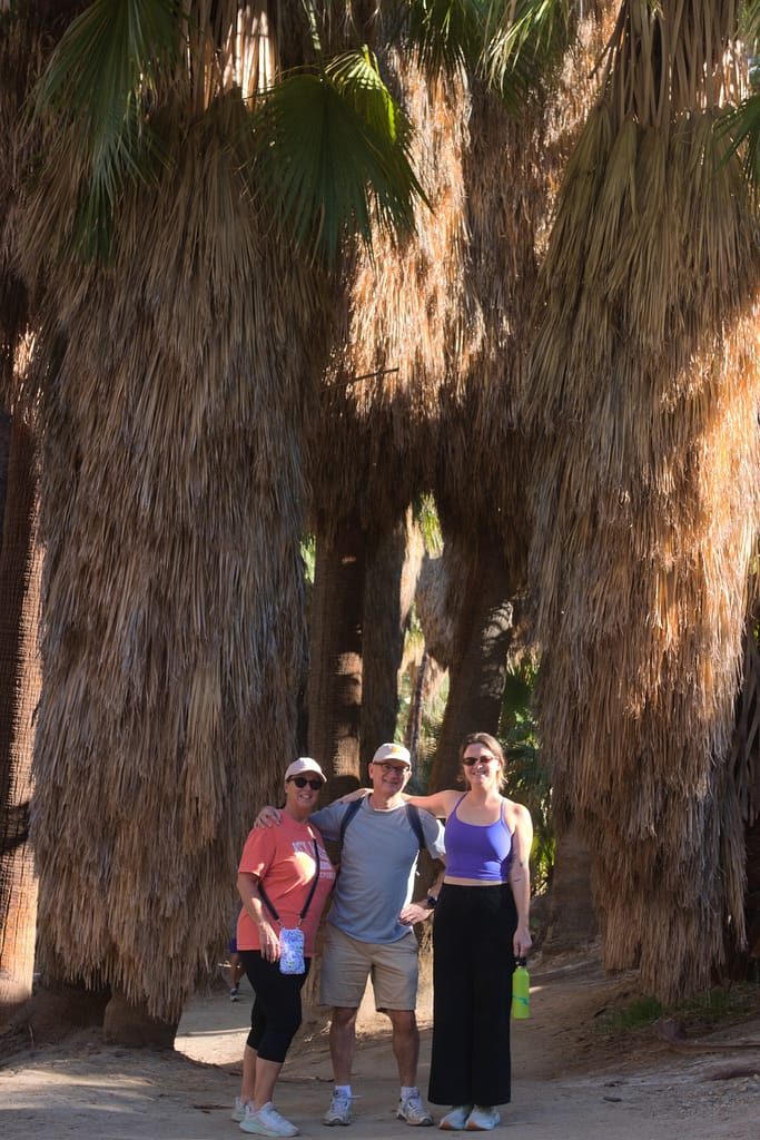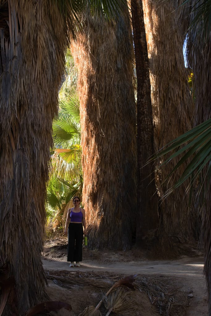 I don’t know the name of the particular hike we did, but it wasn’t too far outside of Palm Springs, located in Indian/Palm Canyon. It was a more casual hike than Joshua Tree because we started later in the day. Most of it was spent walking among giant palm trees. I have never seen anything like it – they were gigantic, and since it was golden hour, the way the sunlight hit the trees and filtered down to the floor made the whole experience feel surreal. It reminded me of walking through the temples in Egypt. Egyptian columns were actually designed to mimic the leaves of date palms.