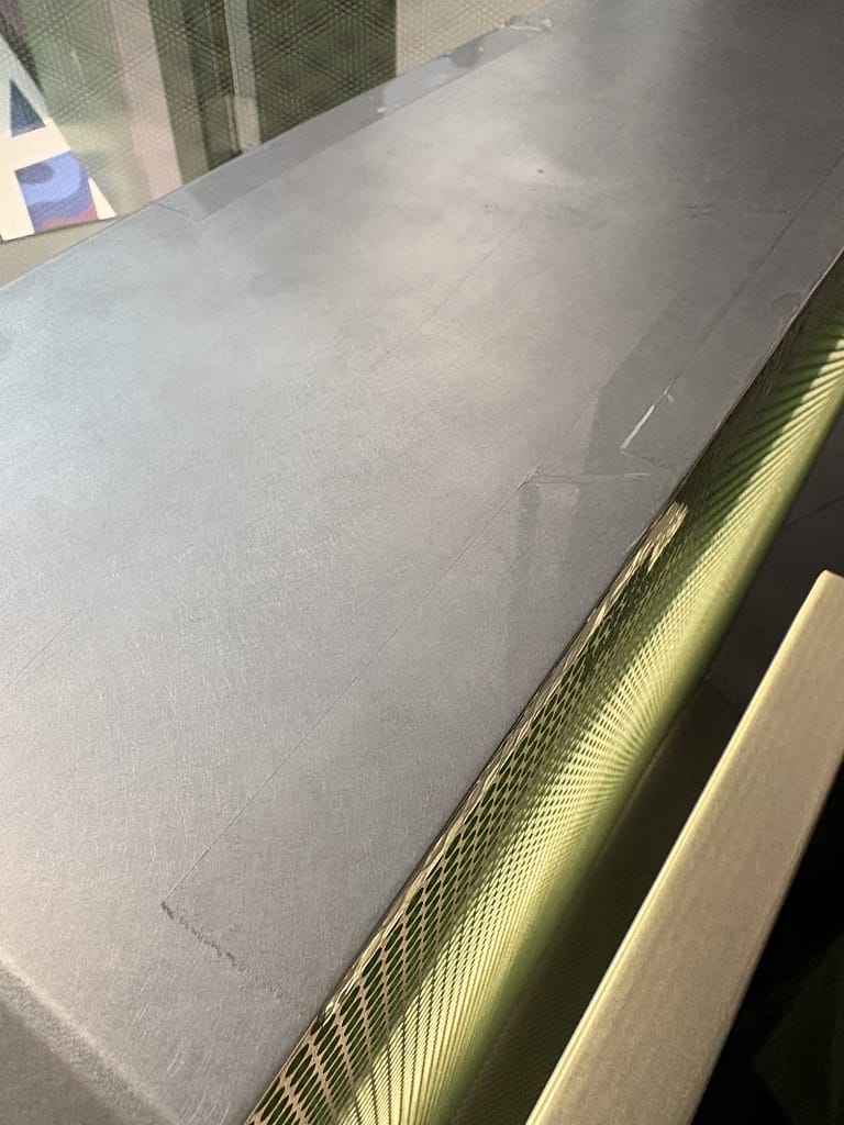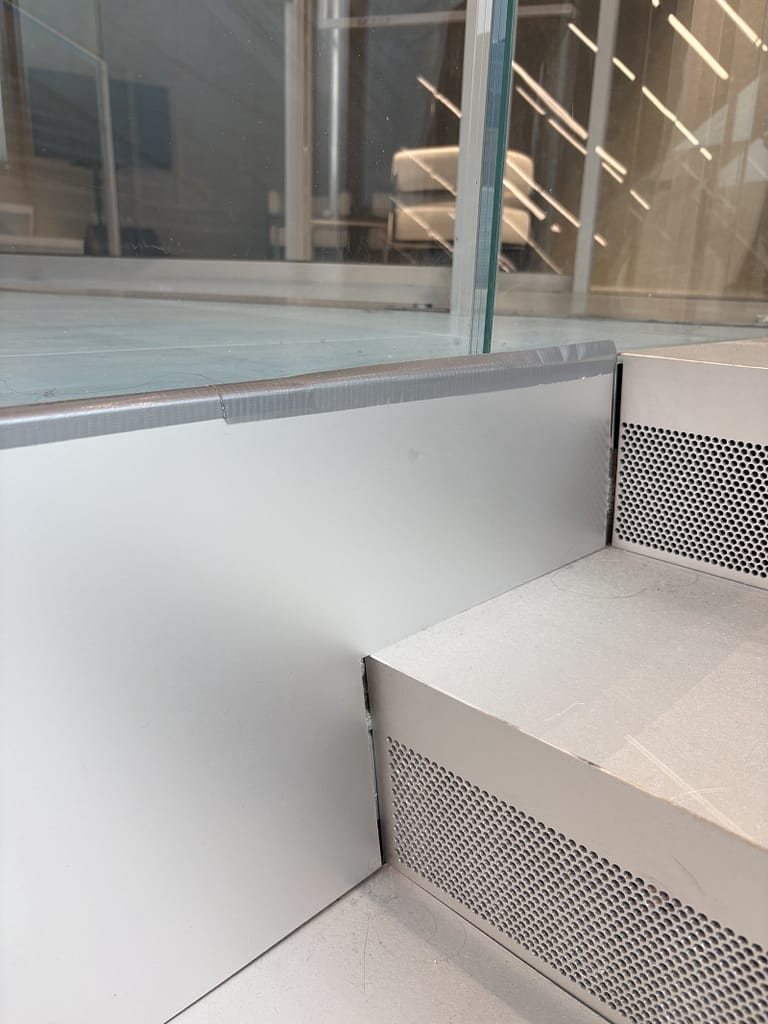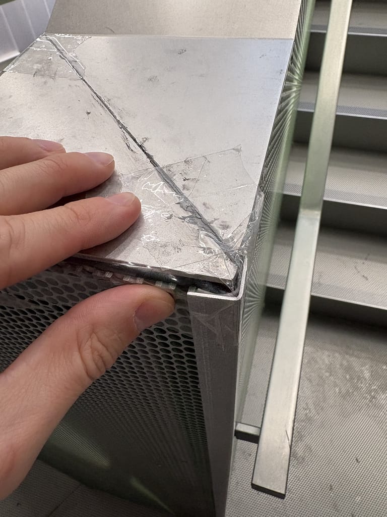 It doesn’t matter what the architecture is trying to do if someone can cut their hand running it along a railing because a perforated metal panel doesn’t align with the top metal cap.