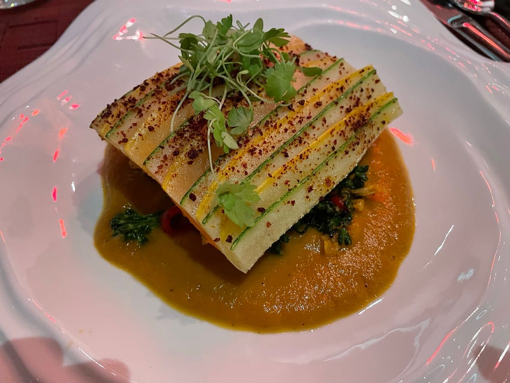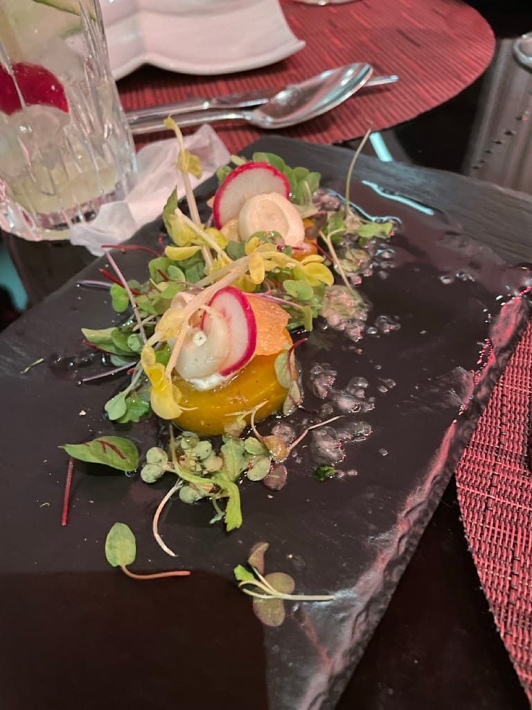 The dinner was a 10-course meal, with an optional wine pairing that I optioned not to do. While everyone shared their plates in pairs, as the only vegetarian of the group, I was served special made plates for each course. By the time the 10th plate arrived, I was so full I could barely take a bite. Throughout the meal, I took pictures of each course, but I forgot to take a picture of the entrée and desserts. The dessert afterwards was delectable. The service was impeccable and while I hope to never spend that much on a dinner again; it was worth it for the one night.