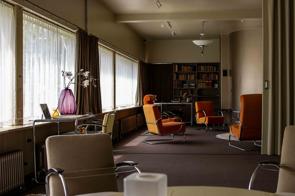 The Sonneveld House was completed in 1933 and when compared to the Rietveld Schröder House seems like it comes from a different century. It’s located next to the Bojimans Depot in central Rotterdam. The Sonneveld house shares more similarities to the Villa Savoye by Le Corbusier than the latter. However, like the Rietveld Schröder House, its architecture and the interior, along with its furnishings, were perfectly coordinated and built to reinforce one another and specifically attuned to the family’s lifestyle. It was high tech for its time and included many amenities that were found in the lavish houses of the U.S. wealthy. The attention to detail and customization was inspiring.