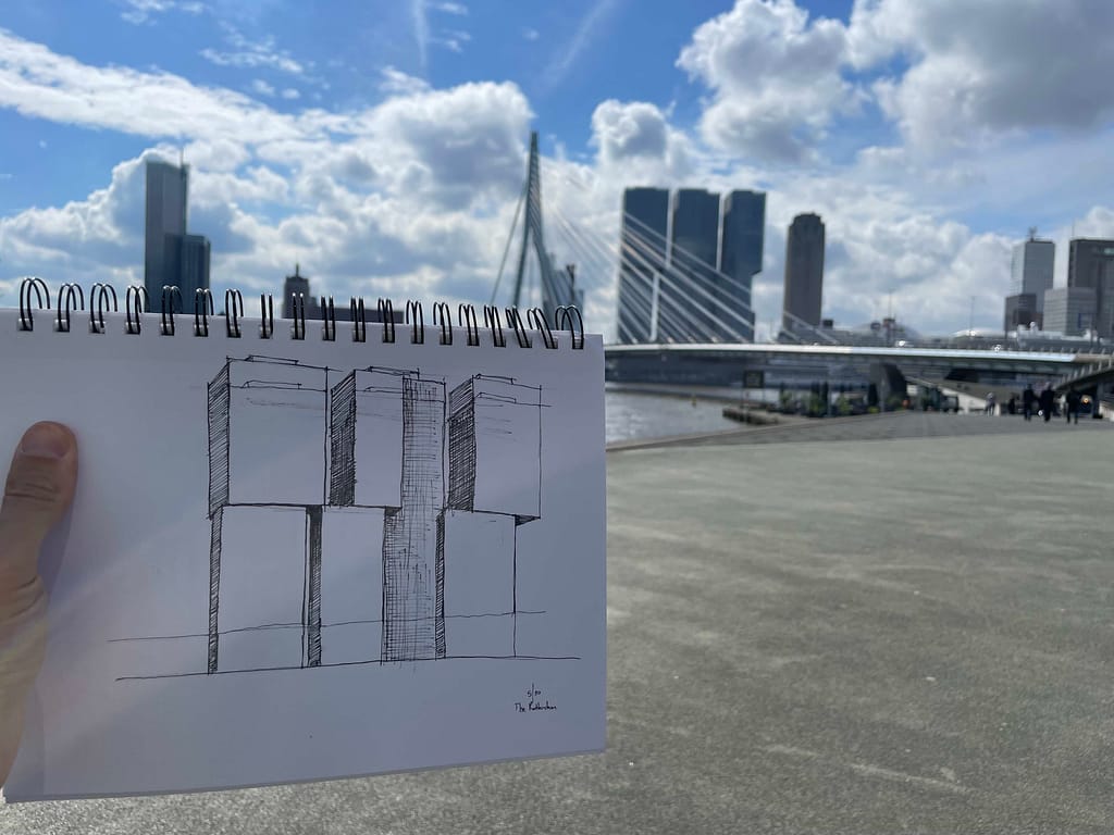 De Rotterdam is a trio of offset interconnected mixed-use skyscrapers in the old port side of Rotterdam. It was designed by OMA, headed by Rem Koolhaas, a Rotterdam native. It was conceived as a vertical city with offices, apartments, a hotel, shops, restaurants and cafes. In the 1970s, Koolhaas wrote a book titled, Delirious New York, where he examines the conditions that led to the creation and vibrancy of New York. De Rotterdam seems to be the physical manifestation of this. He introduces a skyscraper to Rotterdam, transforming the skyline of a city that once had none. Just as the Dutch founded New Amsterdam, which later became New York—the birthplace of the modern skyscraper—the iconic structure now returns to its roots in the Netherlands.