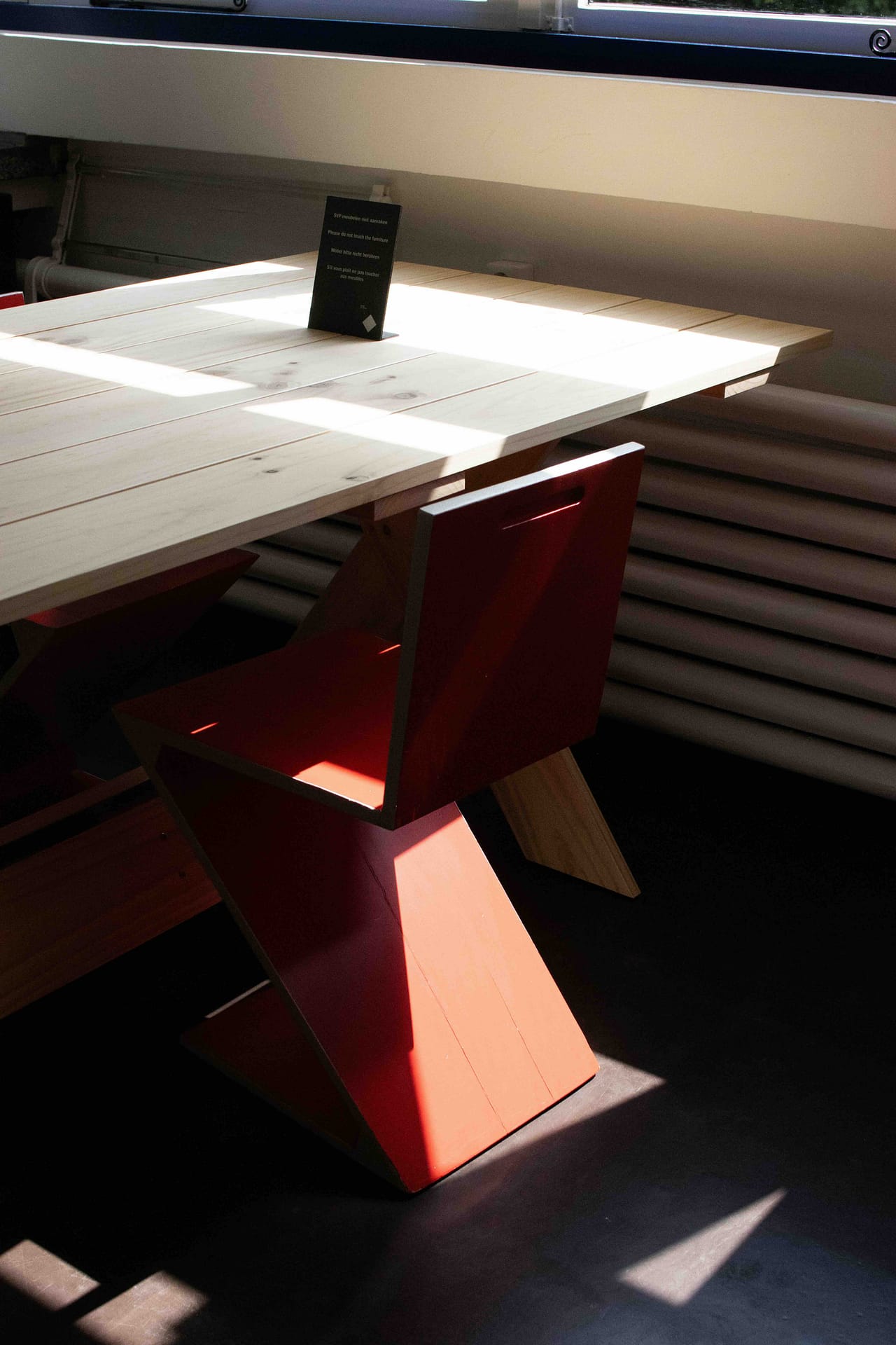 Rietveld is associated with the De Stijl movement, a movement rooted in cubism and driven by strong geometric order. Mondrian is considered one of the eminent De Stijl artists. Rietveld, on the other hand was a furniture maker by trade and grew tired of tradition and attempted to strip away the superfluous elements. His red and blue chair, designed in 1918, is the embodiment of his ideals and reflected in the house he designed for Schröeder. The chair is the house and the house is the chair.