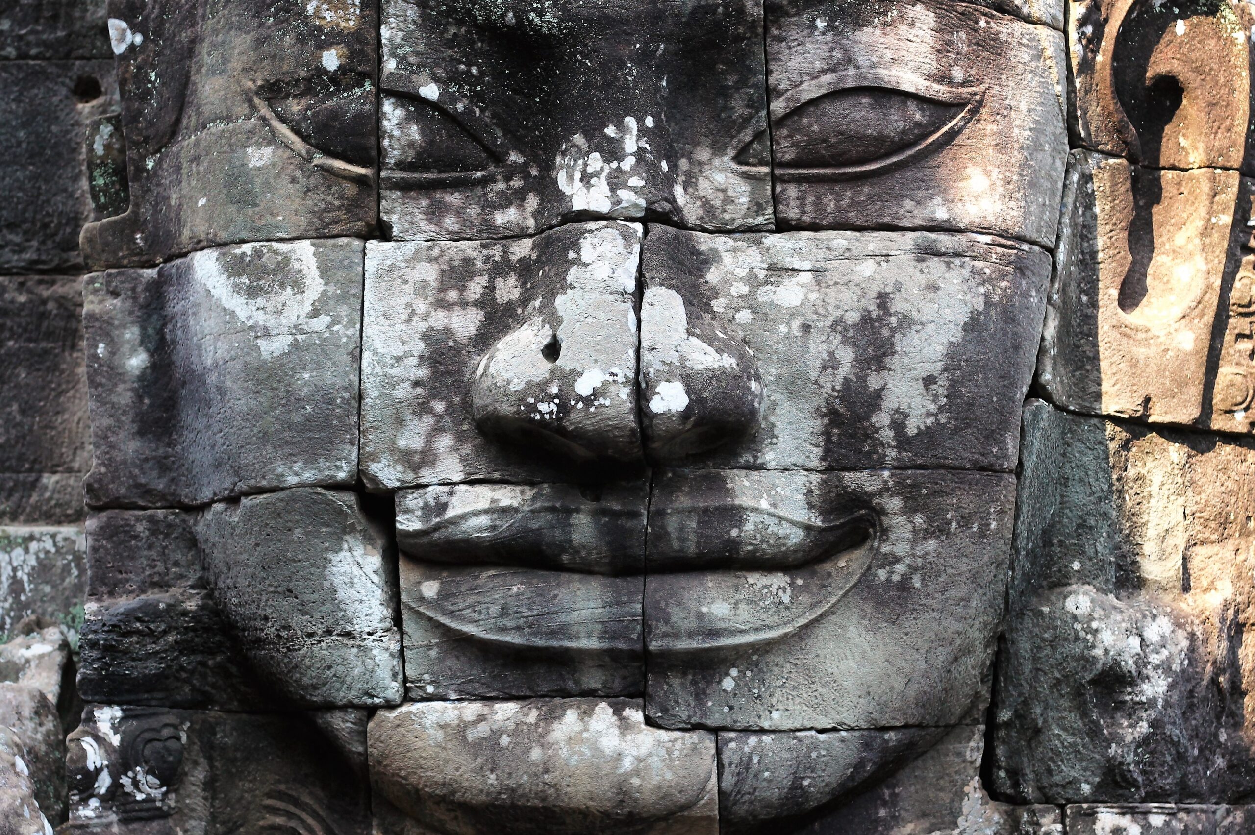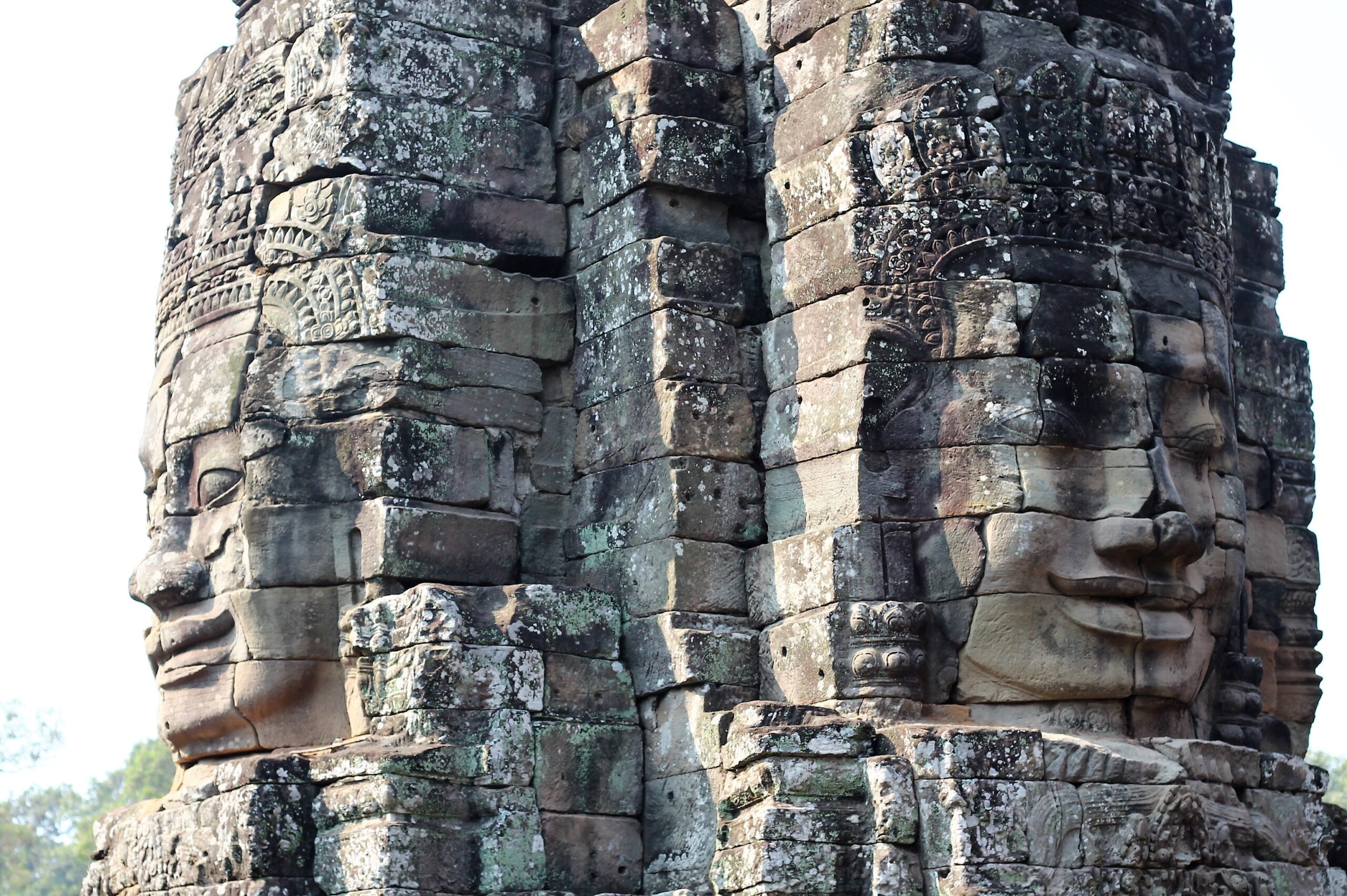 It’s not a temple, but a city that includes many temples within it. It was the largest of all Khmer cities and was founded by Jayavarman VII where it remained the capital until the 17th century. It covers an area of 9 sq km (3.5 sq miles), ensquared (I’d say encircled but it’s in the shape of a square) by an 8m (26 feet) high wall and a moat. Within it is Bayon temple “the temple of faces”