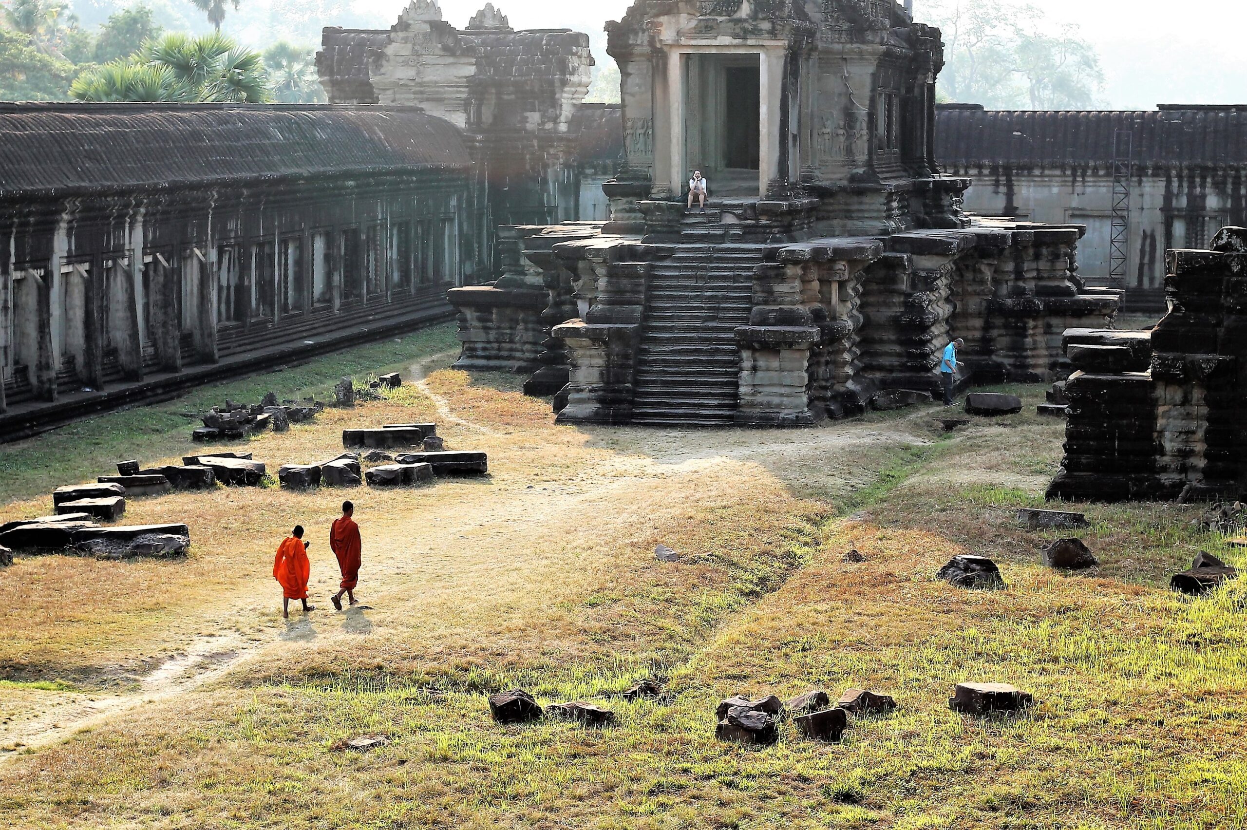 The magnum opus of the Khmer empire and the most well known temple. Built between 1113 and 1150 by Suryavarman II (finally someone different!) and unlike anything else. It’s the worlds largest religious building and contains more stone than was used to build the great pyramids of Giza. Surrounding it is a 200m (650ft) wide moat that encompasses a perimeter of more than 5km (3 miles). A stone causeway under renovation when I was there connects the two. It’s also a building I learned about freshman year of college in architecture in global context class. A class my sister also happen to choose, so we were in it together. We never expected that nor did I ever expect to have the opportunity to visit it in my life.