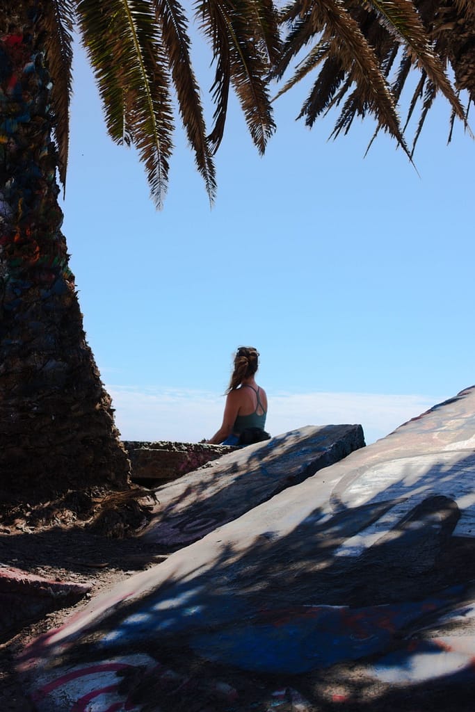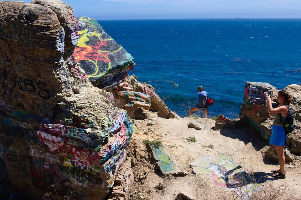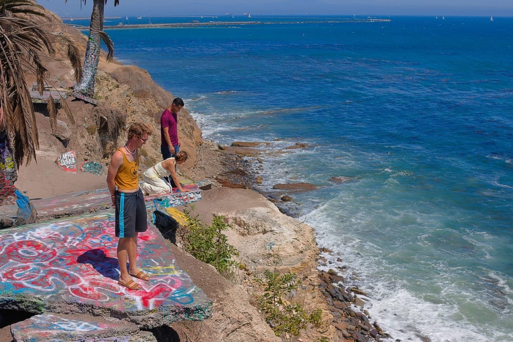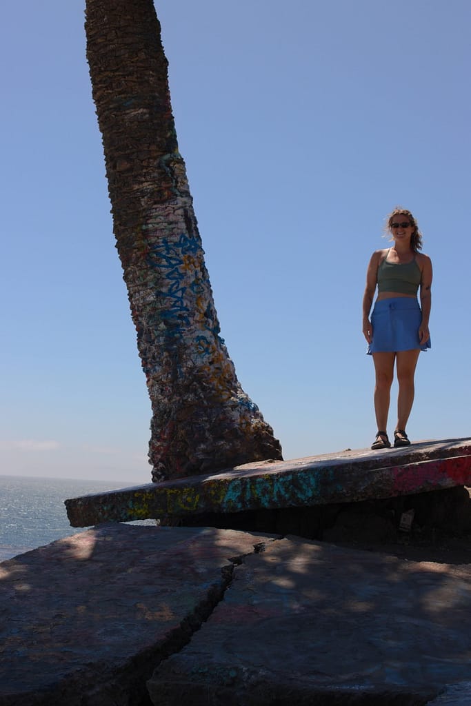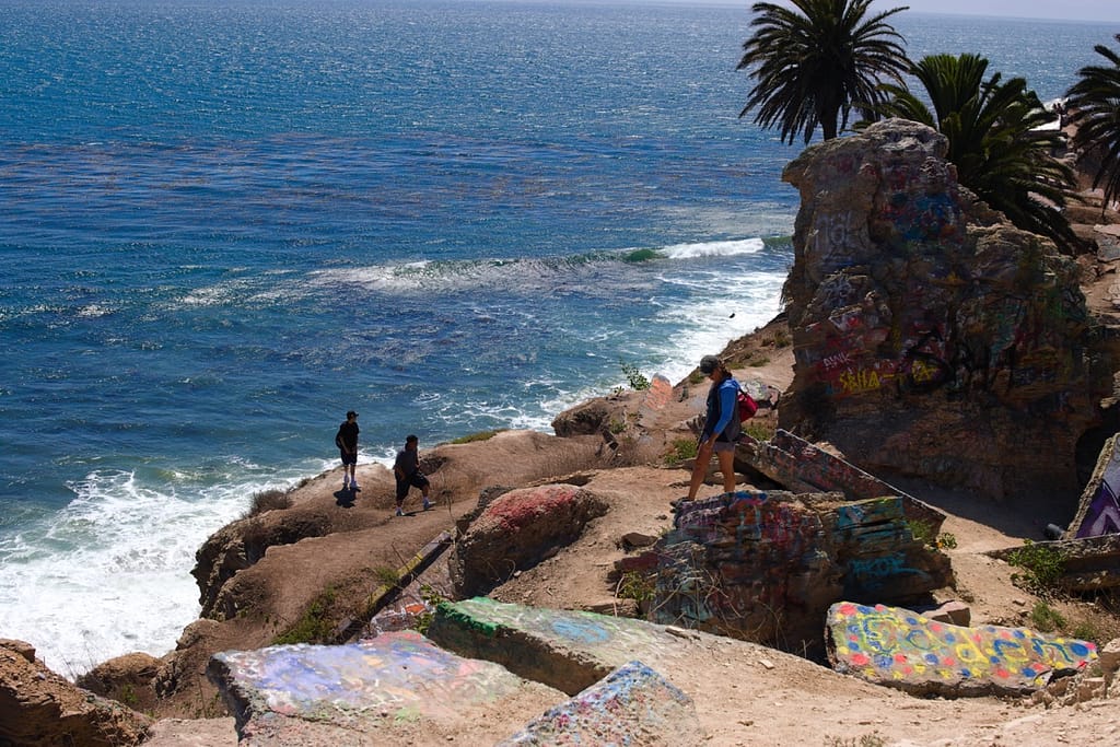 Initially not in our trip. At the planning phase I discounted the Sunken City because it didn’t look like much, and it wasn’t anywhere near where we were going. However, we ended up nearby on our way to a beach and I’m glad we went because it was unexpectedly beautiful. It is the remains of a 1920s neighborhood that slid into the ocean after a landslide. The ruins are tilted sidewalks, broken foundations, and graffiti-covered fragments. It sits on a bluff next to the ocean, the brightly colored graffiti adds a touch of unexpected color to a natural landscape palette.