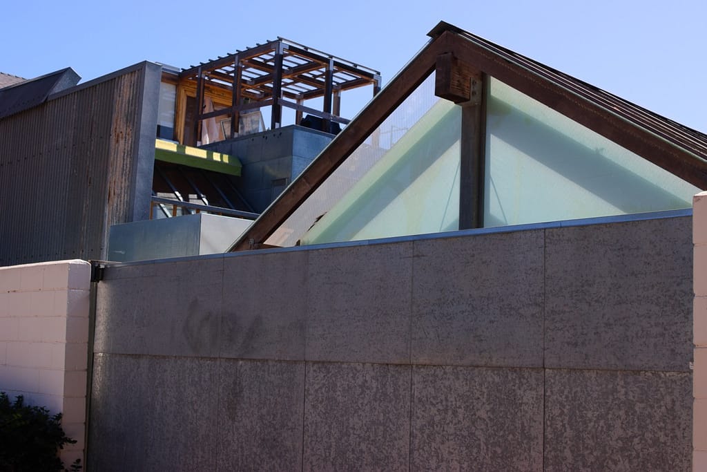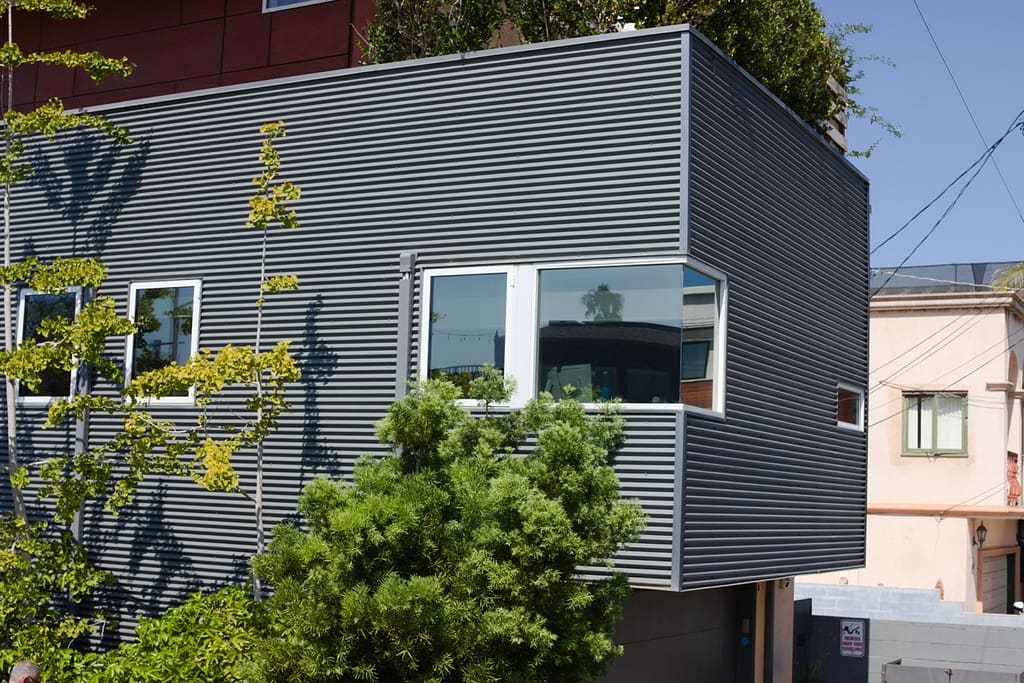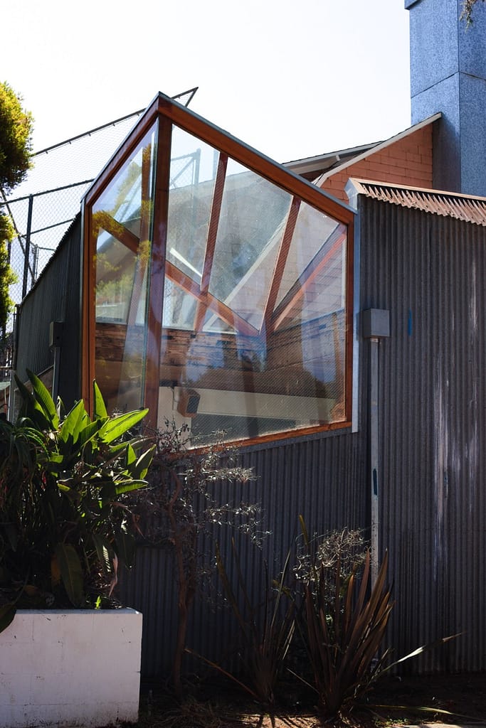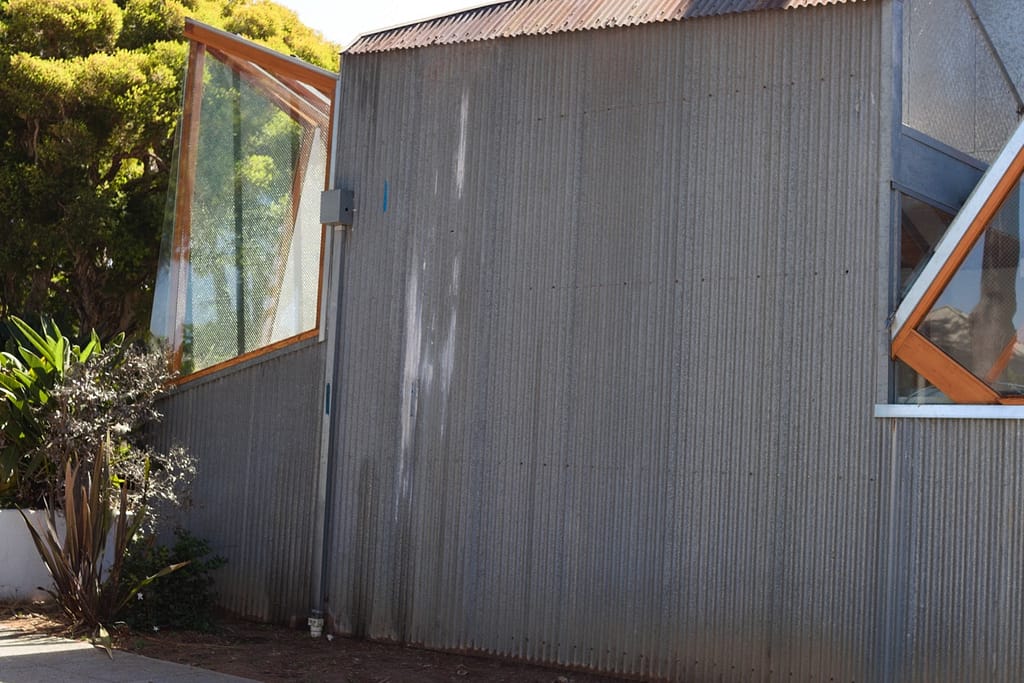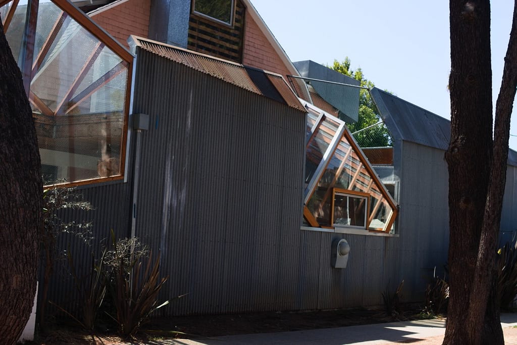 He used everyday items like chain-link fence, corrugated metal, and plywood to create the extension. It’s iconic and you can walk right up to as you could anyone’s home. Trick or treaters could knock on the door if they weren’t scared off by the unconventional material usage.