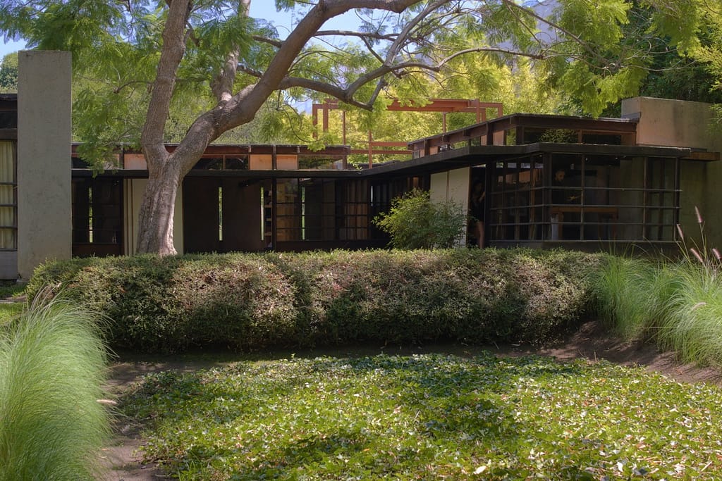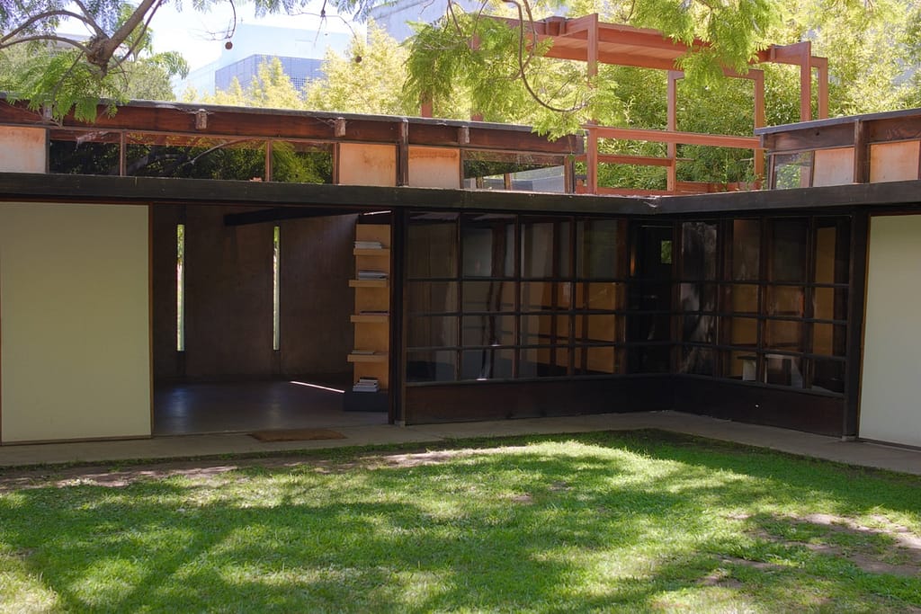 Rudolf Schindler’s 1922 West Hollywood house is often called the birthplace of California modernism. Its open plan, concrete walls, and emphasis on indoor-outdoor living redefined residential design in LA. It’s also a house that wouldn’t seem too out-of-place today, although it could do with some higher ceilings. Below is an excerpt from Architecture Today that can describe it better than I ever could: