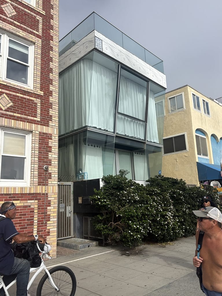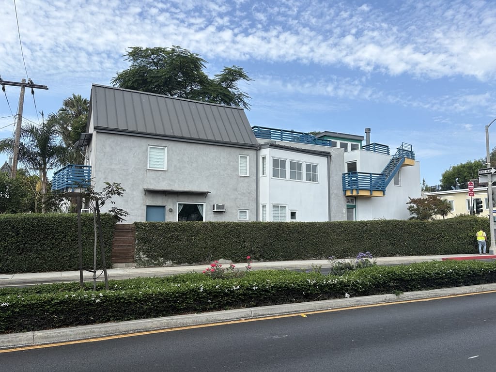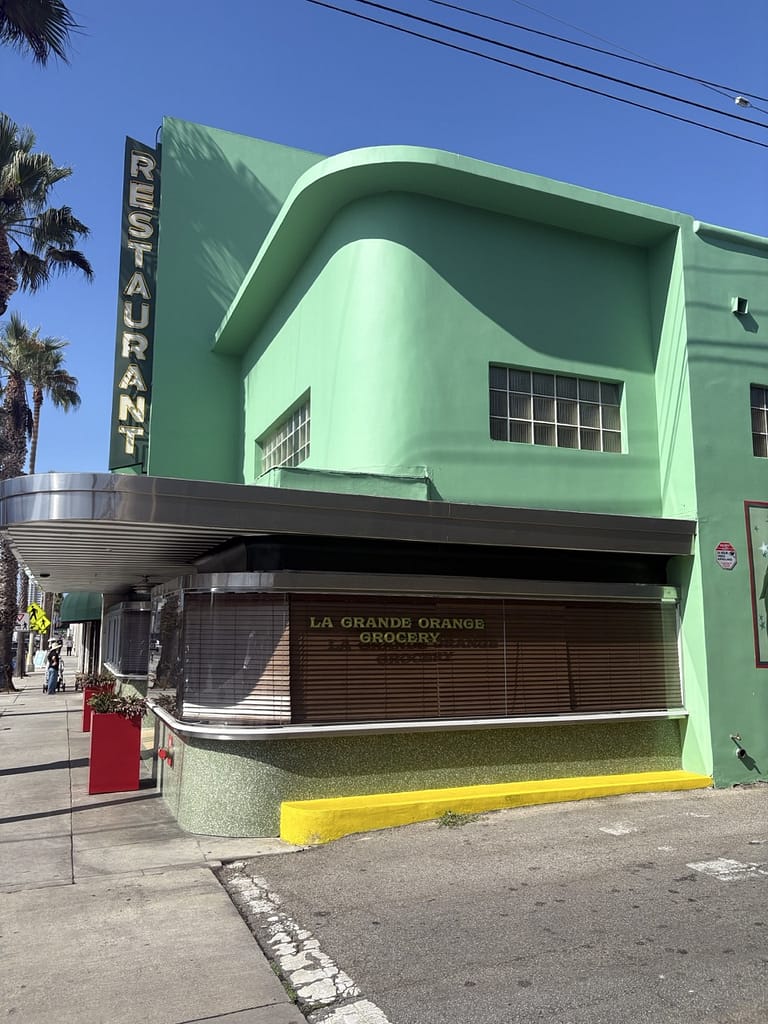 One thing I really enjoyed was just walking around Santa Monica and taking in the architecture. The city is full of low-rise apartment buildings, each with its own uniqueness, some mid-century modern, some more Mediterranean-inspired, others just different. Because L.A. gets little rain, you see a lot of flat roofs, which give the buildings a different look. Flat roofs also open up more possibilities, like roof decks and outdoor spaces, making the buildings feel more connected to the weather. Outdoor courtyards were abundant in the architecture. It’s a place where even a random residential block or building can feel like its own little case study in style.