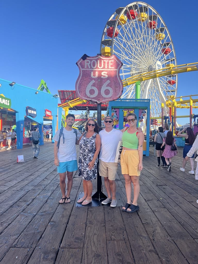 Santa Monica Pier, the end of Route 66 was built in the early 1900s. It juts out 1,600 feet into the Pacific Ocean and offers beautiful views of the Santa Monica coastline. It’s like a bare minimum amusement park with a roller coaster, Ferris wheel, a ride for smaller kids, some amusement park-style games and a place or two where you can get funnel cake or ice cream. We went on the rollercoaster and it was quite fun. At the end of the boardwalk is a restaurant and while we didn’t eat there, it would be an amazing place to catch a sunset.