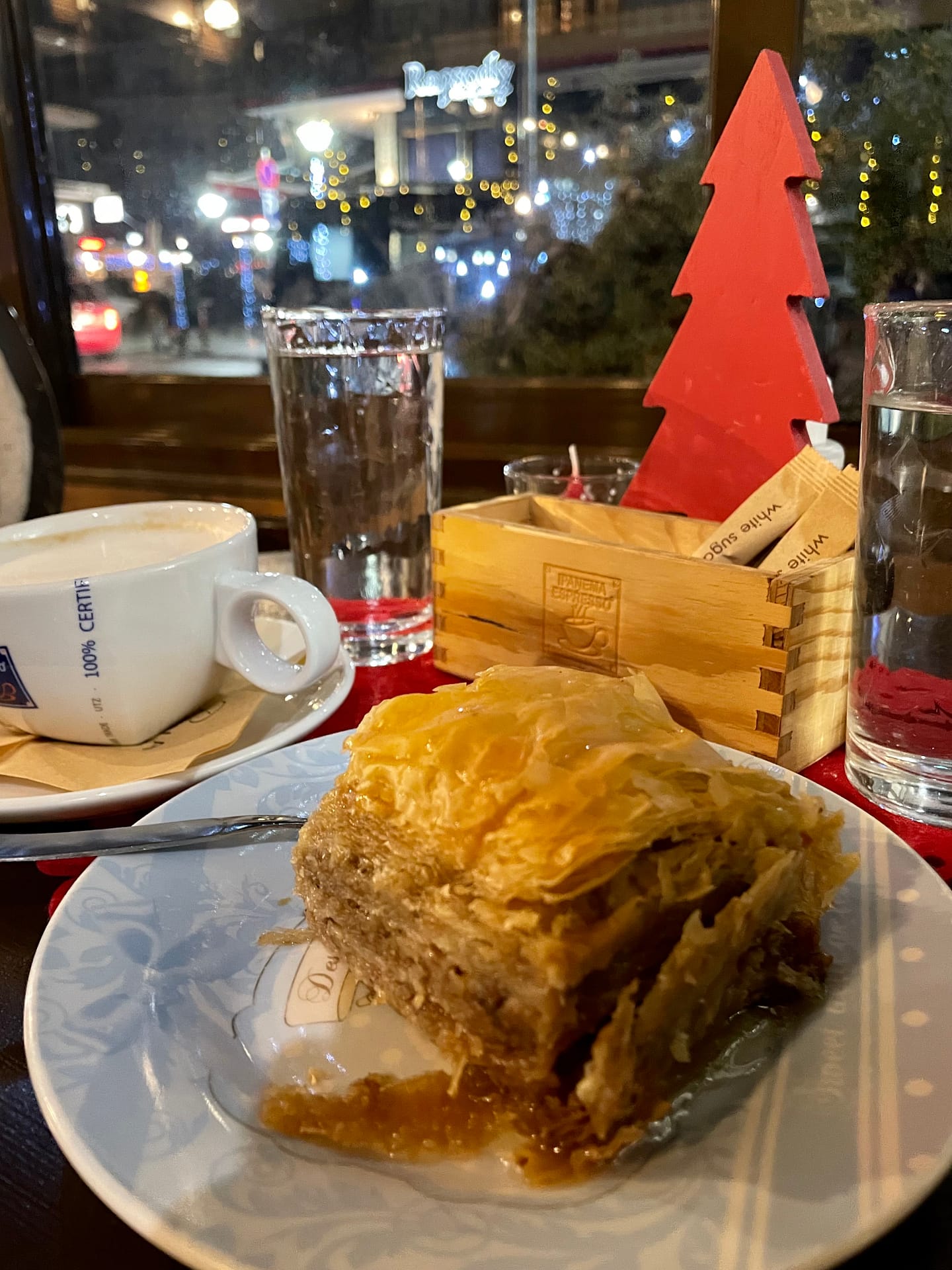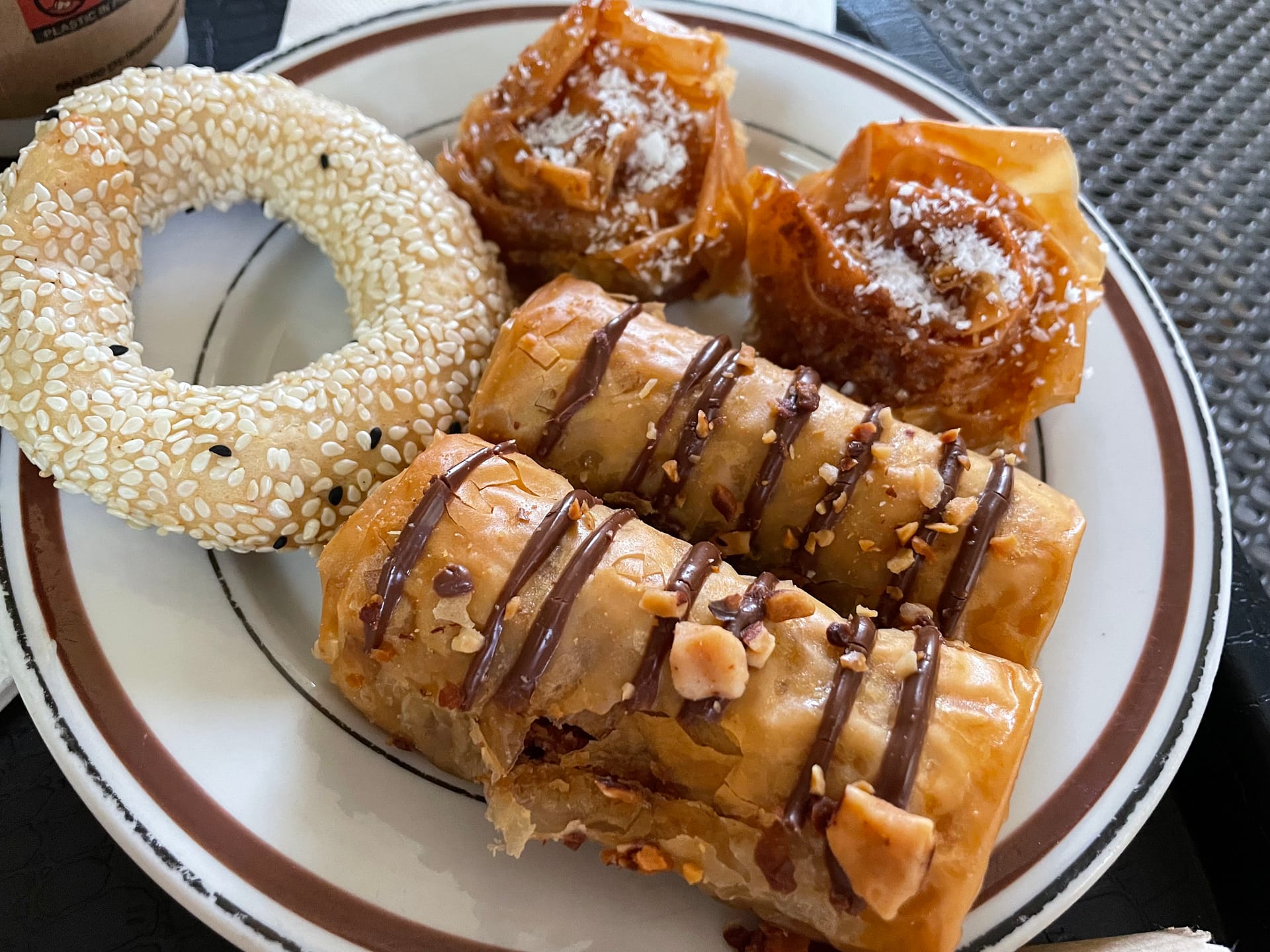 How anyone can stay thin in Greece is a mystery. The wide diversity of pastries and desserts influenced by Greeces conquerors throughout the centuries makes you want to try a different one each time you see one. In Athens, guys in carts sell a variety of baked goods, like giant donuts for a euro. Every city is filled with gelato places and bakeries/cafes. Baklava, for examples, is a desert I have always associated with Greece, but may have originated in Turkey with the Ottoman Empire. It’s a delicate topic, with many countries claiming their Baklava as the origin and was even brought to court to the EU by Turkey. Regardless of where it comes from, I’m sure it’s equally delicious from each country and their identity they share with it. For my mom and I, we had to try as many baklavas that our stomachs had room for. The most memorable, was a baklava ice cream at the restaurant Stou Mamma in Athens. Another dessert that created controversy, but in my own life, was the Greek cheese cake I had. It was the best cheese cake I have ever eaten. As a half-Italian from New York, you can imagine my struggle. I thought cheesecake was Italian. Italian, or New York, were the two types of cheesecakes I knew. Who ever heard of Greek cheesecake? But, the Greeks are the ones who invented it. It dates back to over 2,000 years ago to the 5th century BC, on the island of Samos. Peskesi in Heraklion is the restaurant where we ate it. They serve classical regional dishes and the cheesecake was exactly this. The base was crumbled rusk biscuit; the filling was Cretan cheese (we were told goat cheese), topped with candied walnuts and Cretan honey. The Cretan cheese interior was impossibly light and airy, my first bite was a revelation, like how the food critic in Ratatouille felt as his was thrust back into his past, except for me, it wasn’t the past I was going to, but to the future.Toward a new beginning of what a cheesecake is to me.