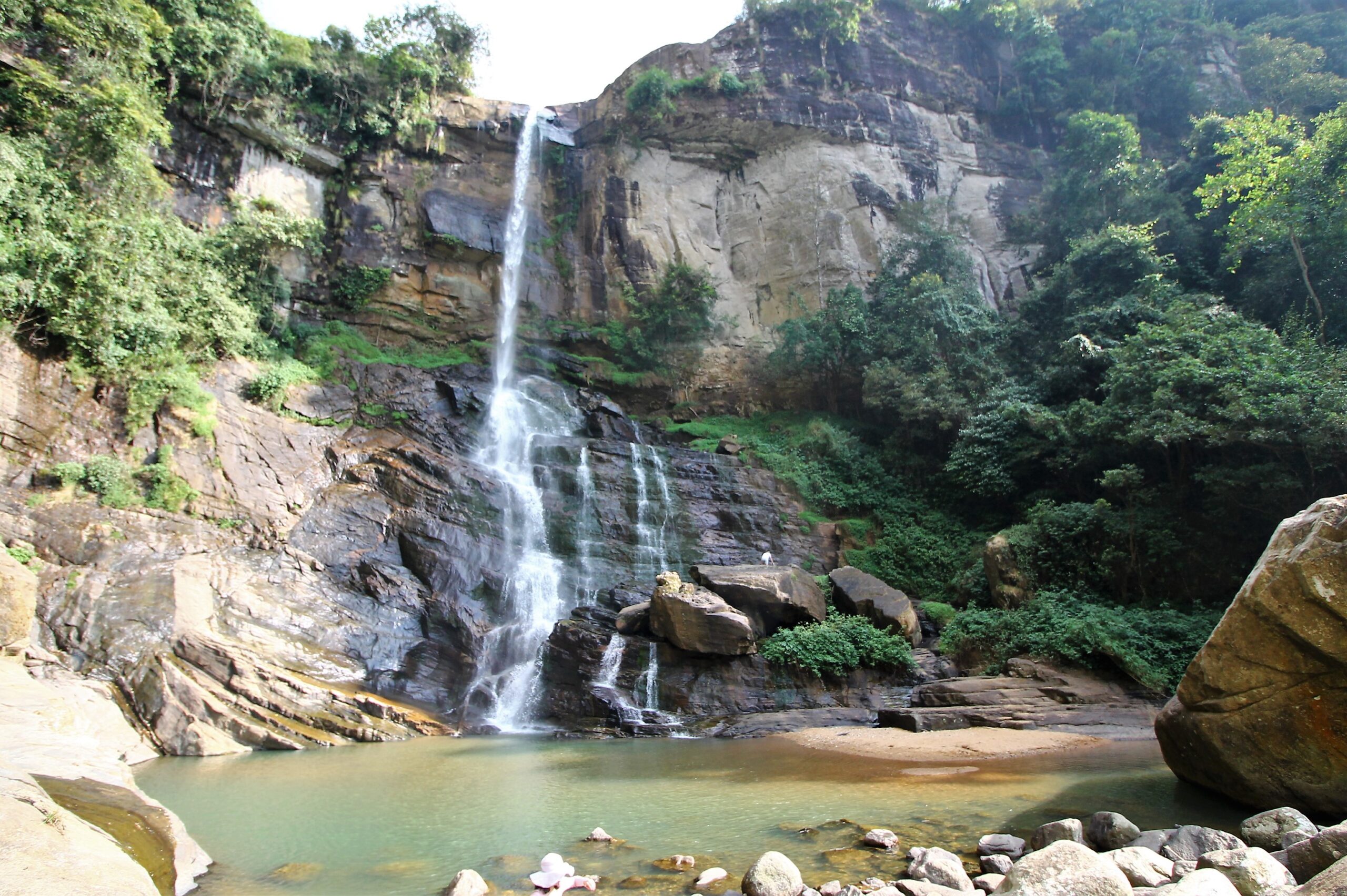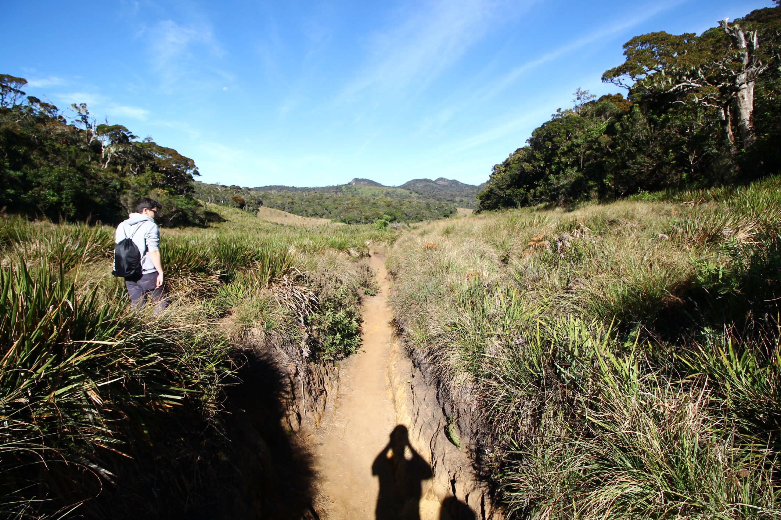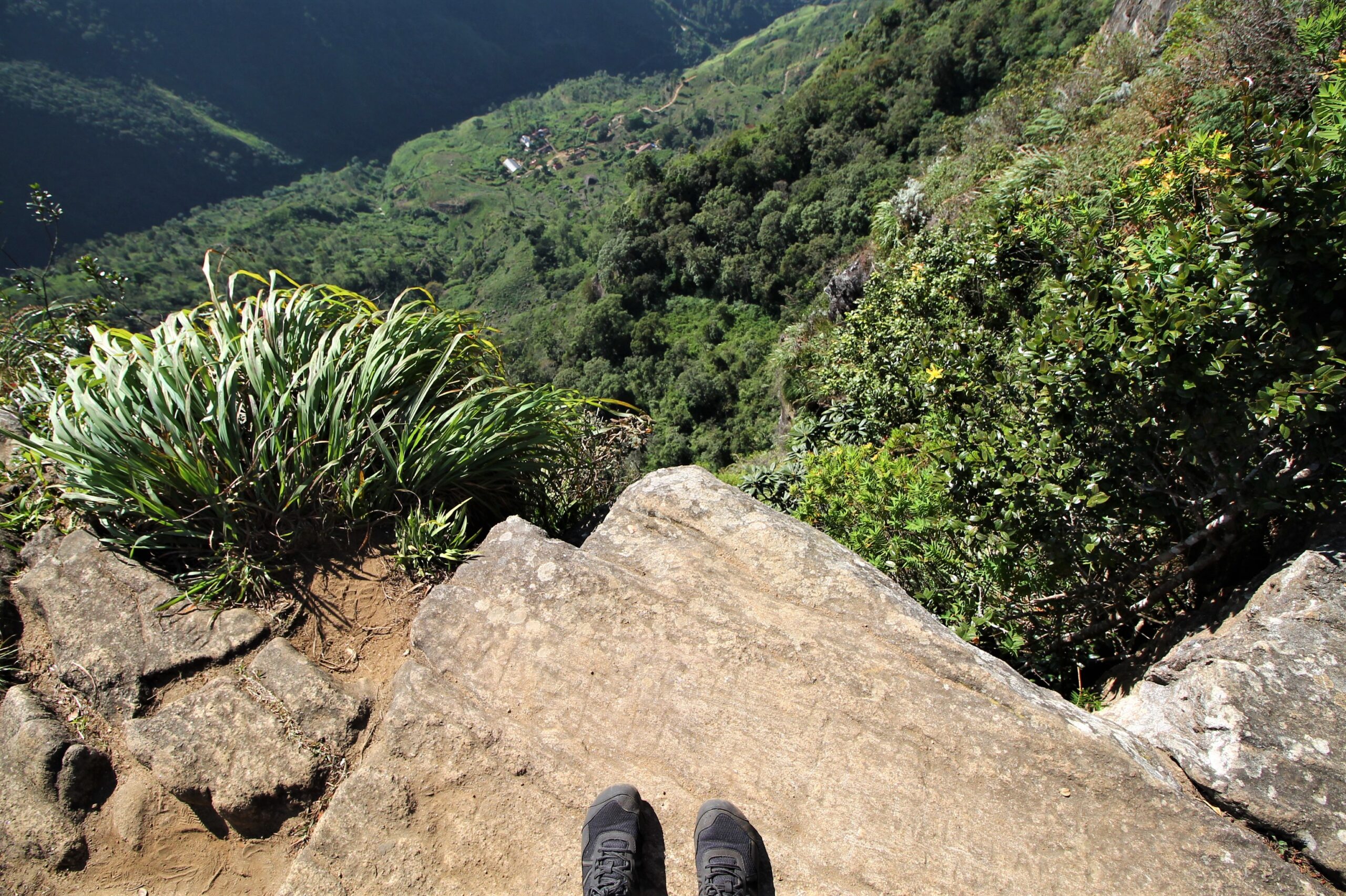 The world’s end hike is in Horton Plains national park located at 6,900 feet to 7,500 feet (2,100-2,300m). The “hike” itself is easy, about a three hour loop on generally flat ground. Before getting to world’s end you first get to mini world’s end, a smaller cliff with a drop of 1,000 feet (300m). World’s end is a sheer cliff with a drop of about 3,000 feet (900m). In other countries the area next to the edge would be roped off, but in Sri Lanka you are free to walk and fall where you want. It’s not dangerous, but you have to be sensible. A few months ago a German tourist fell to her death while taking a selfie. I was tempted to accidentally trip into the Chinese family yelling at each other.