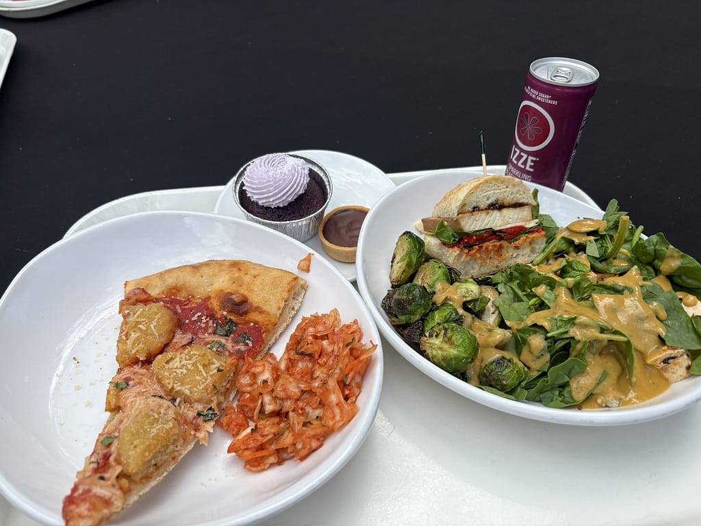 - Santa Monica Brew Works (Pizza, Salad, waffle Fries and Cucumber beer)